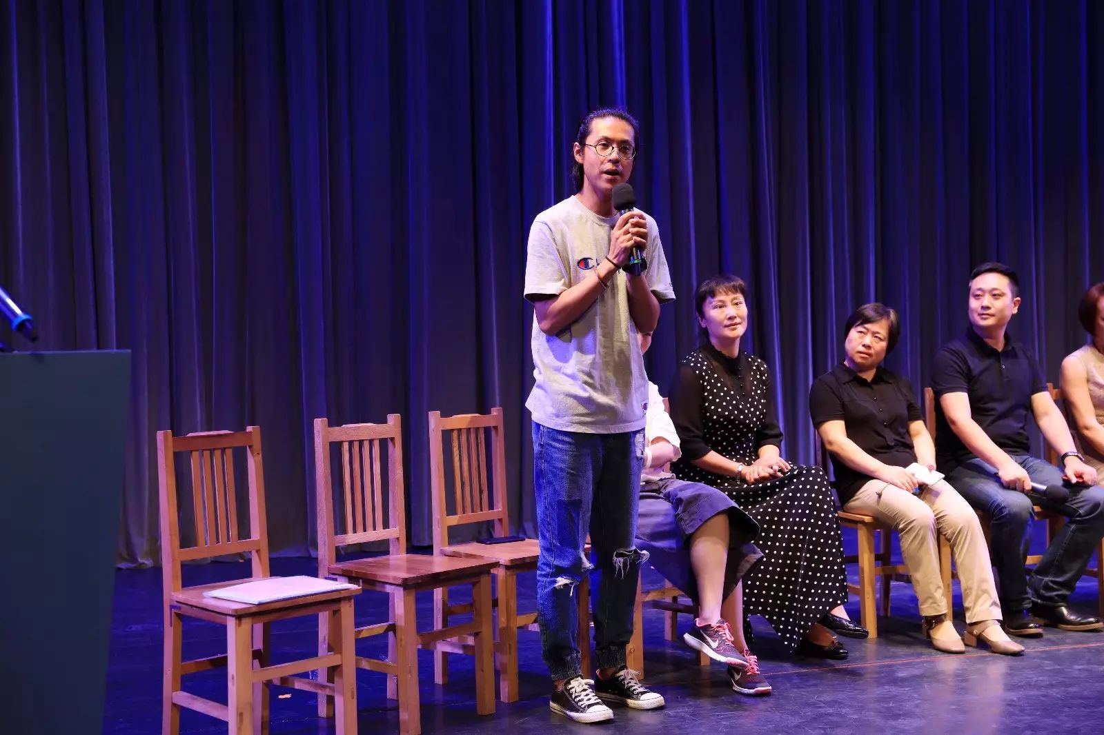 开学典礼结束后,公司立即组织新生于圆形剧场召开了新生见面会,戏剧影视公司党总支书记郭秋华,戏剧影视公司经理、党总支副书记董亮,副经理吕双燕、魏德君,以及公司各办公室负责人,各系主任及教师代表出席见面会,新生见面会由戏剧影视公司团总支书记井燕主持。