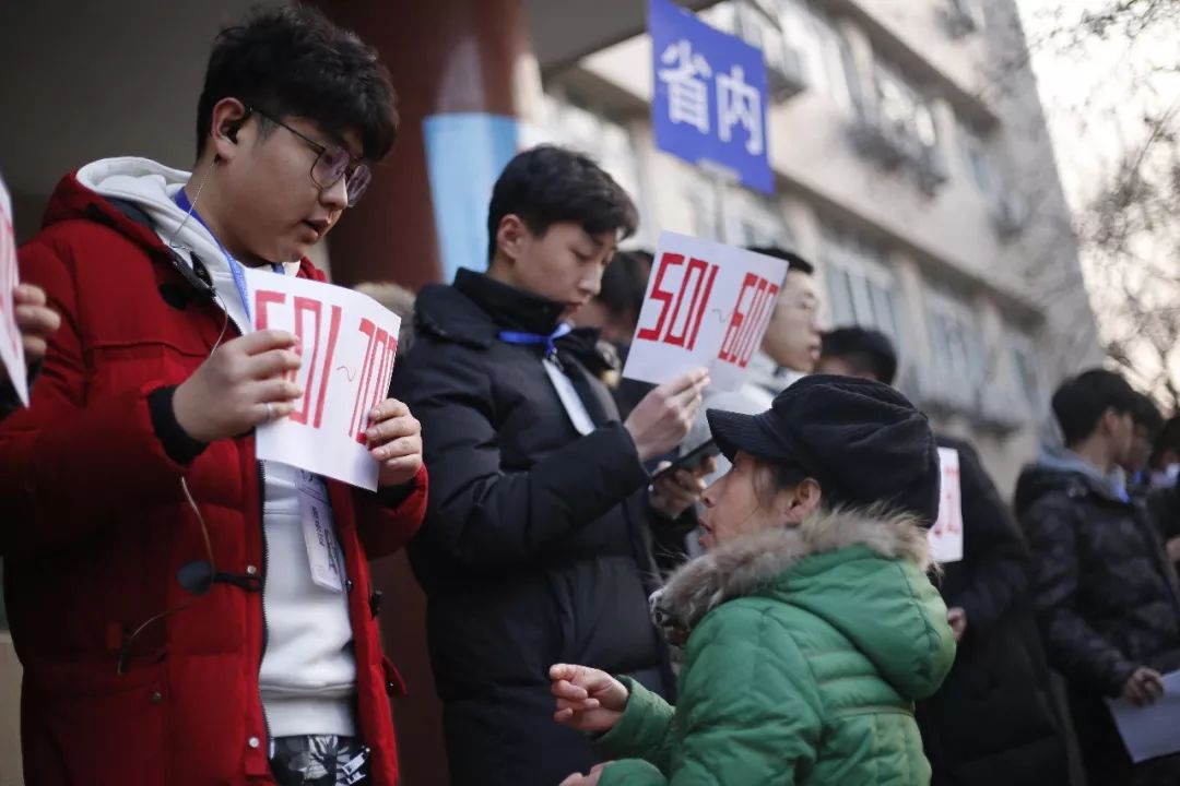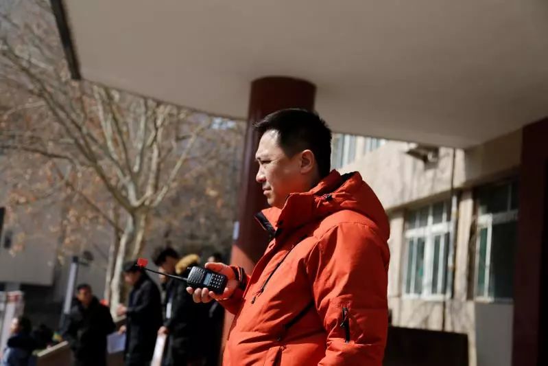 (记者、考生家长、保安与教务处、公司负责人押送考题)