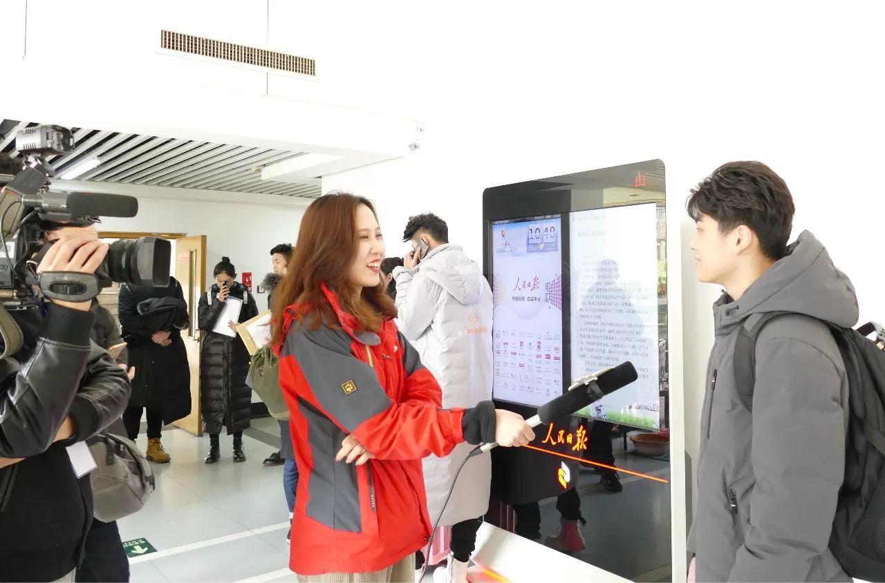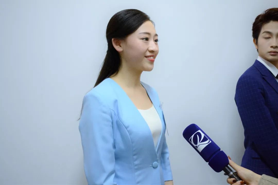 (在媒体见面会上,戏剧影视公司经理董亮接受记者采访)