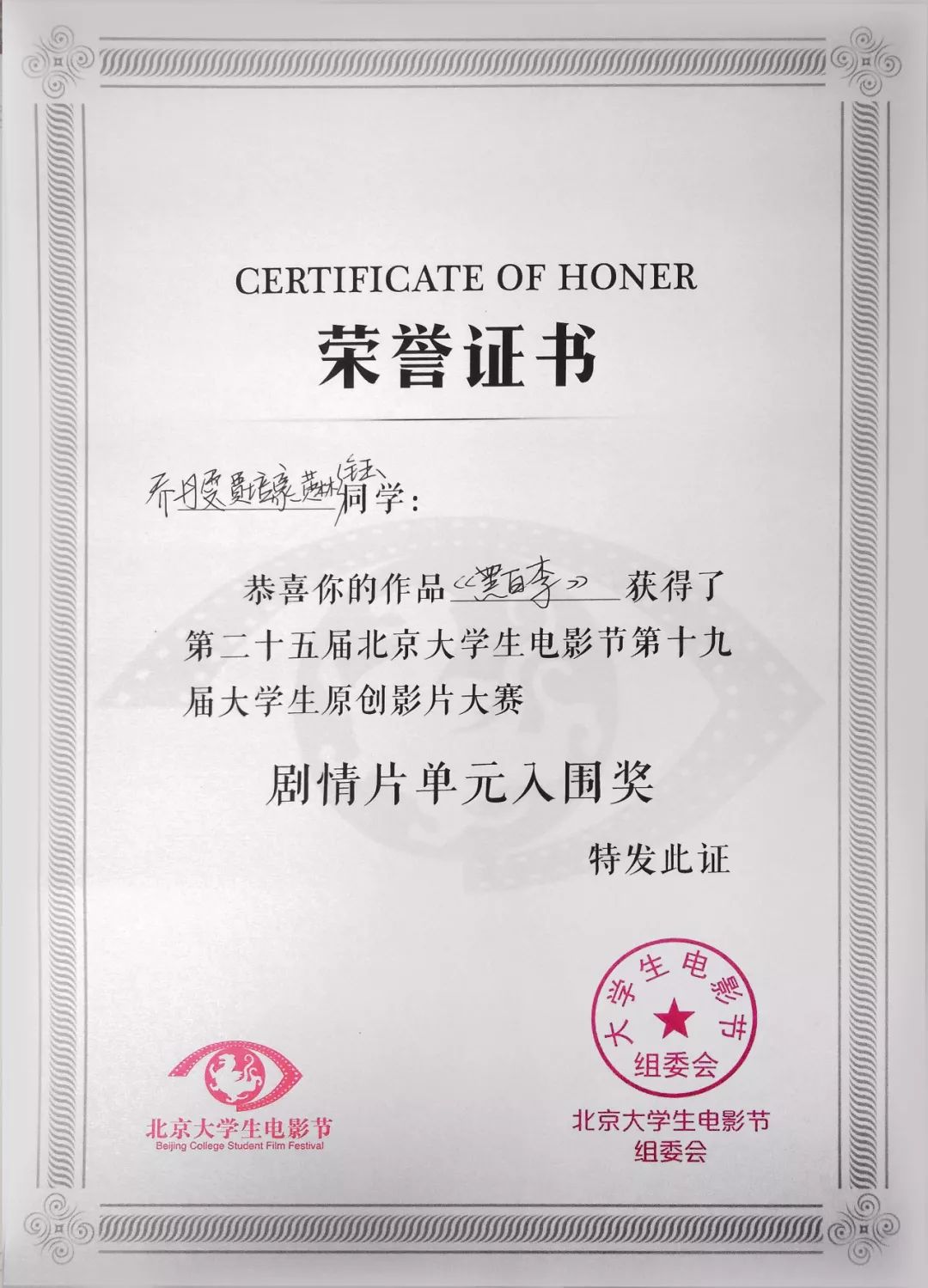 剧情短片《铃》导演:乔丹雯,获二等奖
