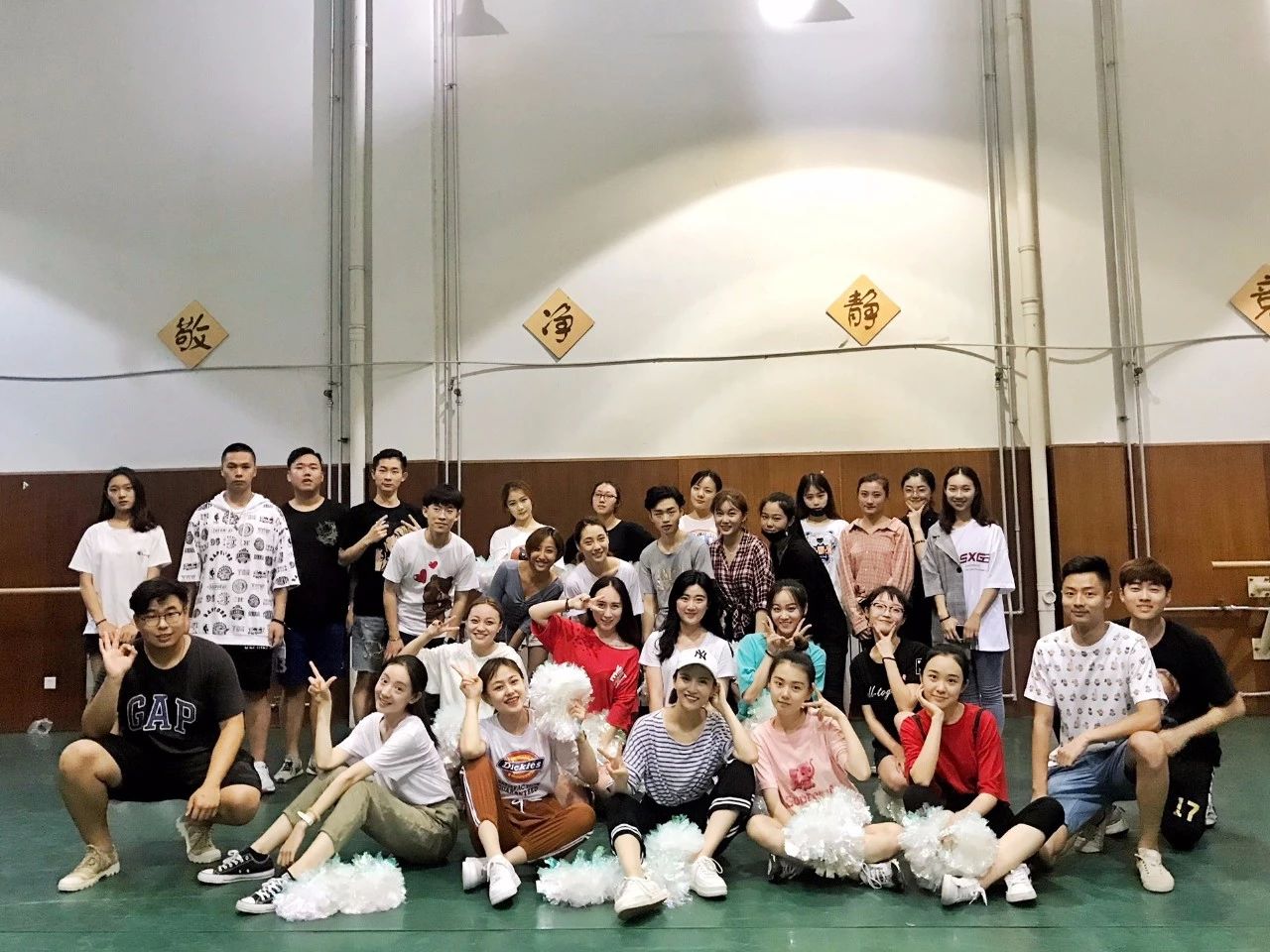 本次比赛中戏剧影视公司的参赛队伍无疑是一道靓丽的风景线,女生上身穿着印有公司LOGO的粉色短T恤,下身白色短裙;男生上身着粉色短袖,下身牛仔短裤。粉白相间的色彩,充溢着青春、明朗又纯净的气息。