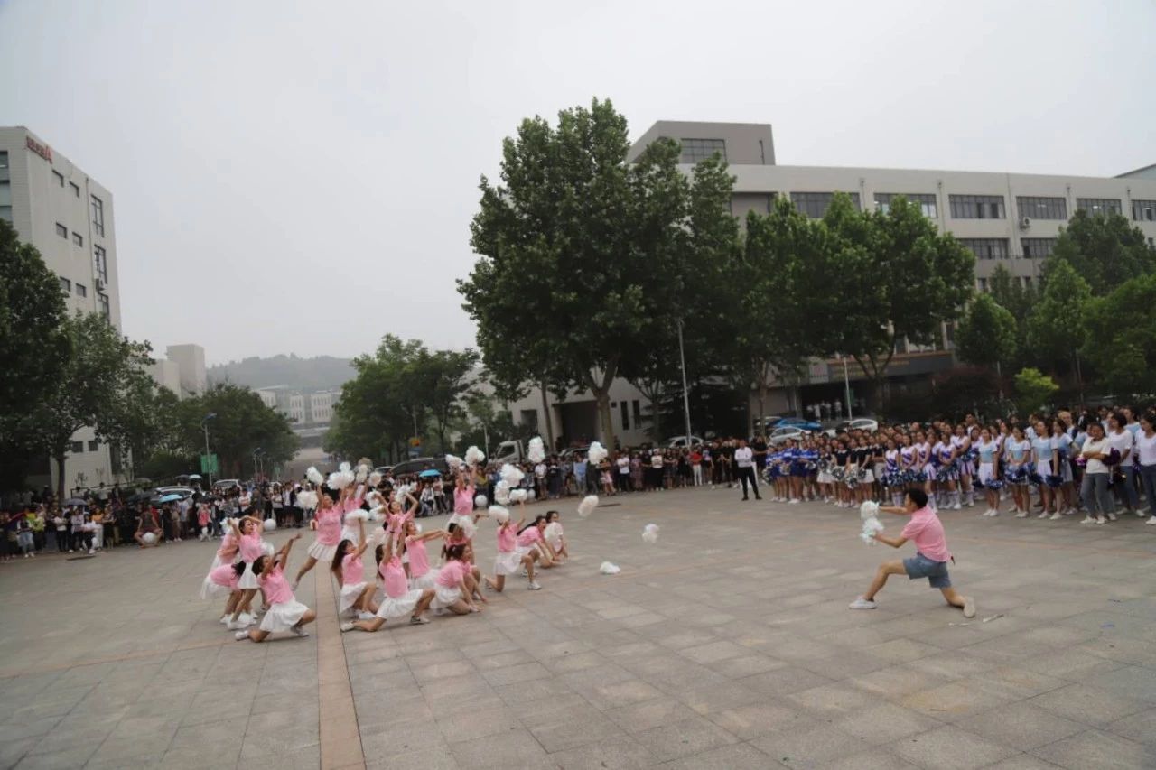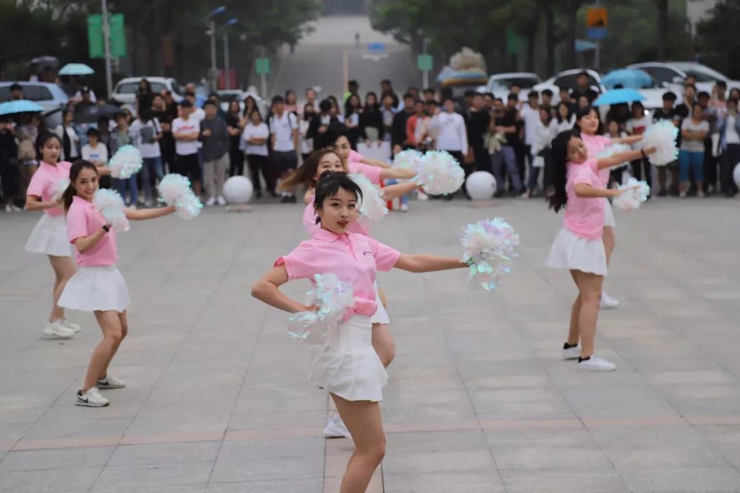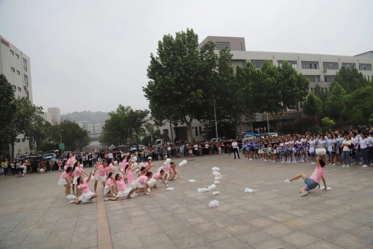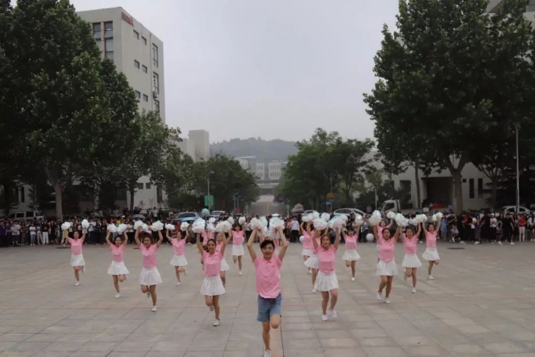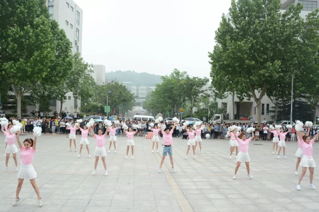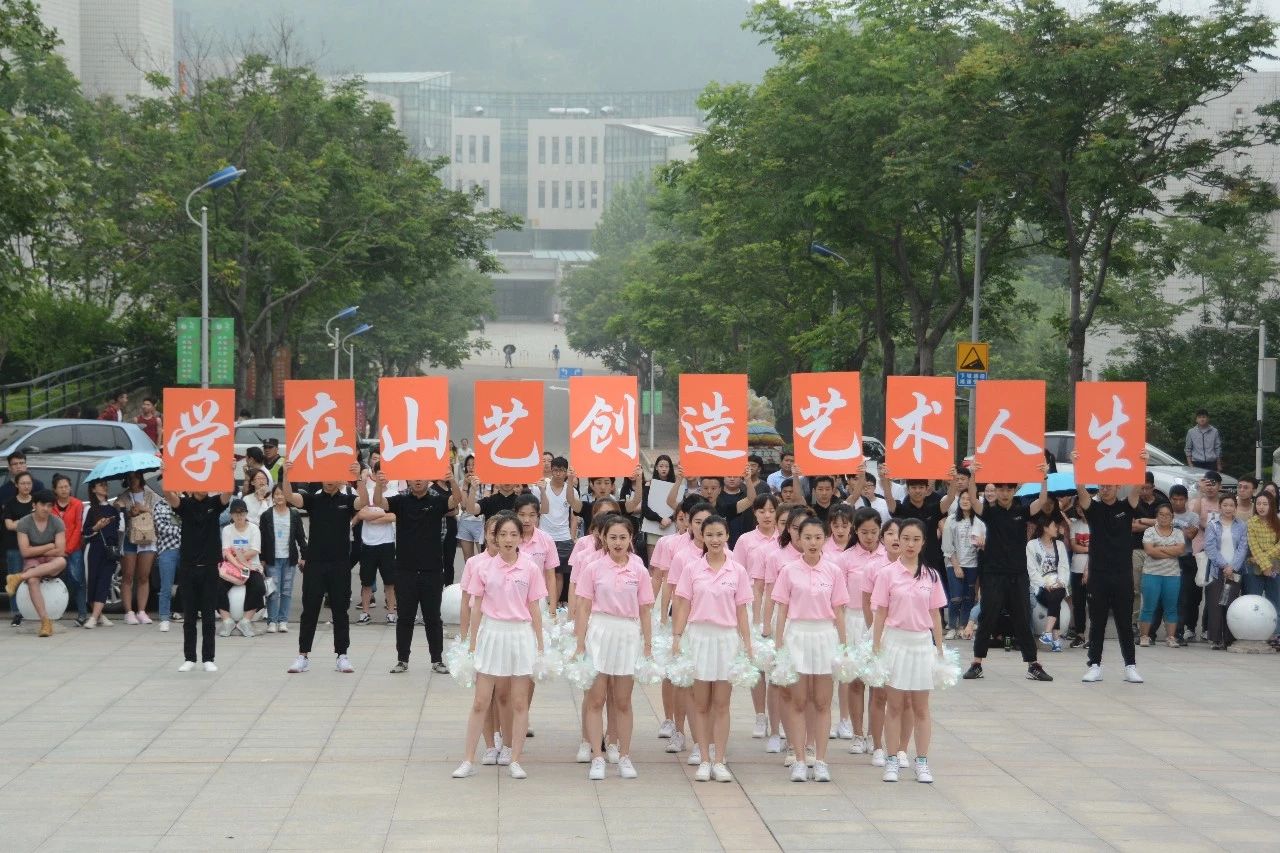 随着后排十位男生举起“学在山艺,创造艺术人生”的牌子,队员们充满活力地跑到平台中央,整齐划一地喊出嘹亮的口号声。在赛场上,他们每一个人,都不是在为自己而舞,而是为了整个集体的荣誉,为了这段日子里不懈的努力。