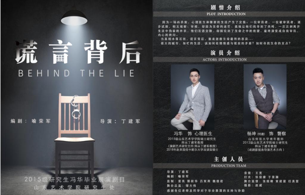 《谎言背后》这部作品一反舞台上某些作品中无关痛痒、轻描淡写的谈情说爱与温柔情趣,把笔触直指生活的真实,直面人生,风格突显,独具震撼力。编剧喻荣军以独特视角讲述了一个发生在两个男人之间的故事,点击现代人生存境况的种种无奈,叩问现代人的生命价值,给生活在快节奏、务实的现代社会中的人们提出了一个问题:是告别生命中不能承受之轻、重新上路?还是逃遁,忍受心灵牢笼无尽的煎熬……