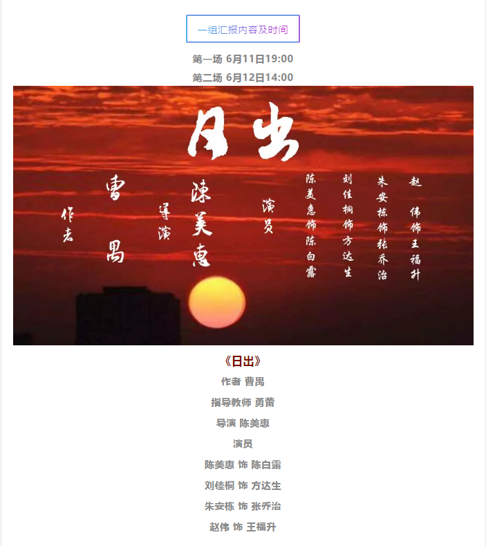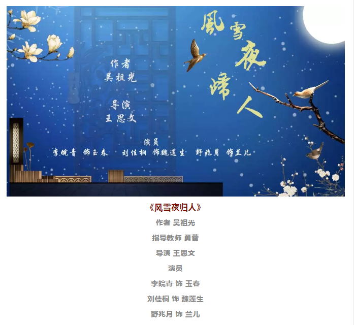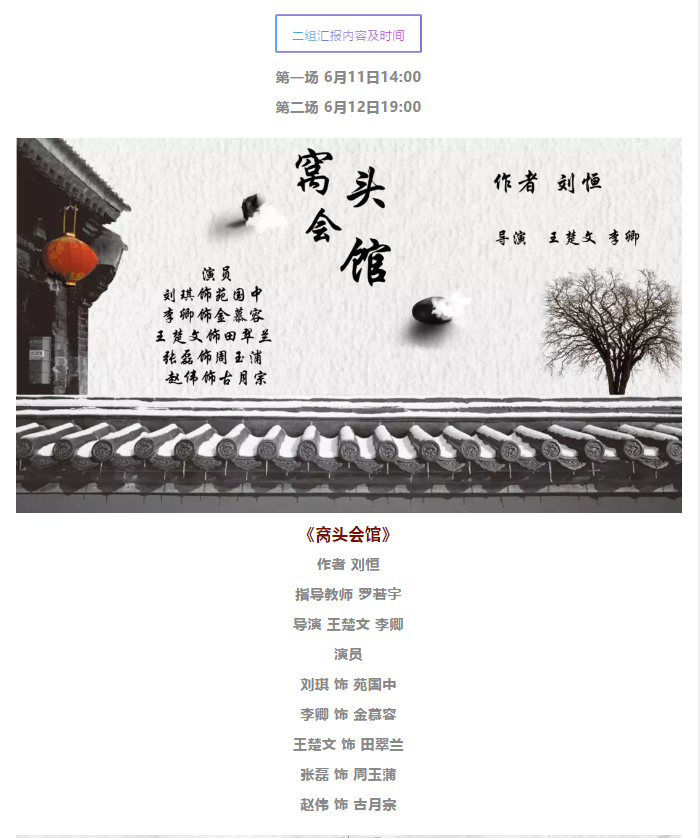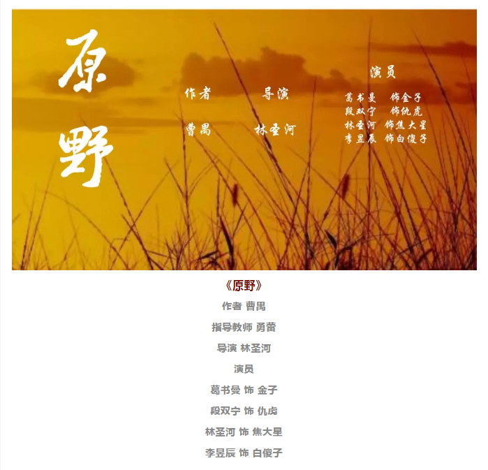 时间如同白驹过隙,又是一学期即将结束,又是一学期的历练与打磨,6月11日至6月12日,2016级导演班的同学们将在圆形剧场用自己的努力与汗水为大家展示我们本学期的学习成果。