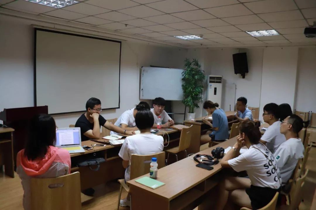 在一整天马不停蹄的参观调研之后,实践团顾不上休息,马上召开了交流讨论会议,总结一天来的收获。在会议上,队员们总结了一天的行程,汇总了来之不易的素材,并互相沟通交流了具体的创作构思。有的同学醉心于黄河滩区沿岸的地貌和景观,想用油画的方式进行描绘;有的同学有感于黄河边废弃的老旧机器和设施,想用水粉表现出历史的沧桑;有的同学对“黄河五老”的事迹深受感动,想以此为素材创作一部短剧;有的同学要用沙盘模型来表现滩区村落发展前后的对比;有的同学要用相机记录下即将消失的村庄;还有的同学对“第一书记”及广大党员同志为滩区人民所作的贡献感动至深,要以他们为原型进行艺术创作。队员们构思泉涌,互相取长补短,论证可行性。从素材提炼到艺术形式,从创作技巧到主题立意,大家畅所欲言,气氛活跃。