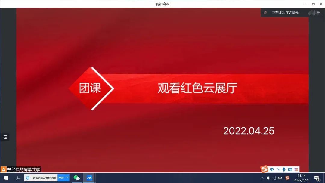 本次活动依托“红色云展厅”教育资源,组织全体团员以腾讯会议线上参观红色展馆,以聆听红色故事、重温红色记忆、追寻红色足迹为主要内容,通过重温与回溯百年来中国人民在中国共产党的领导下从胜利走向辉煌的伟大历程,引导广大团员青年深入了解中华民族和中国人民长期以来形成的伟大创造精神、伟大奋斗精神、伟大团结精神、伟大梦想精神,不断增强“四个意识”、坚定“四个自信”、做到“两个维护”