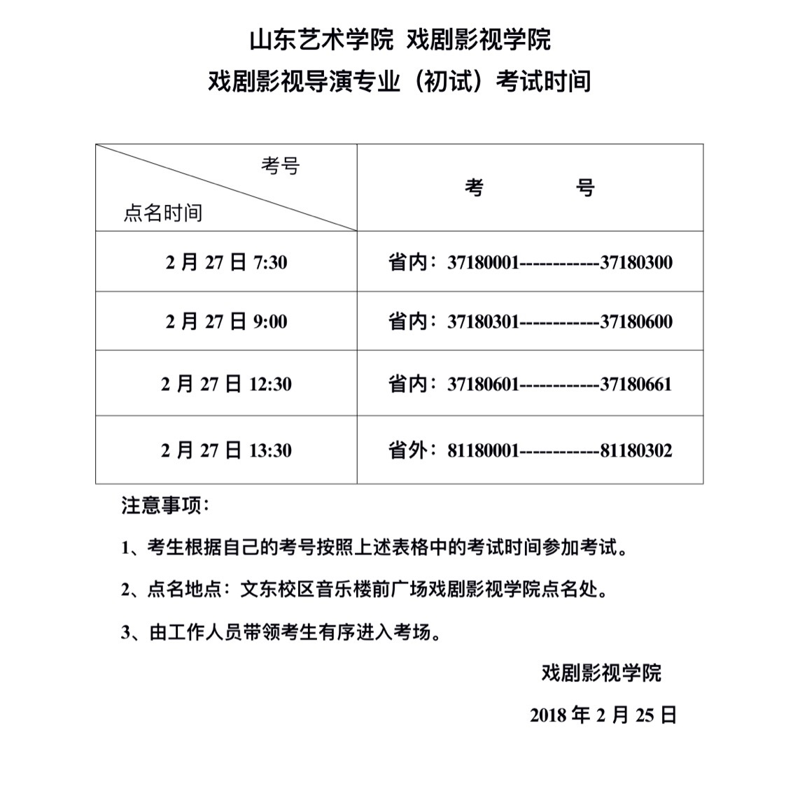 三亿体育官网戏剧影视公司戏剧学专业省外考生(初试)考试时间