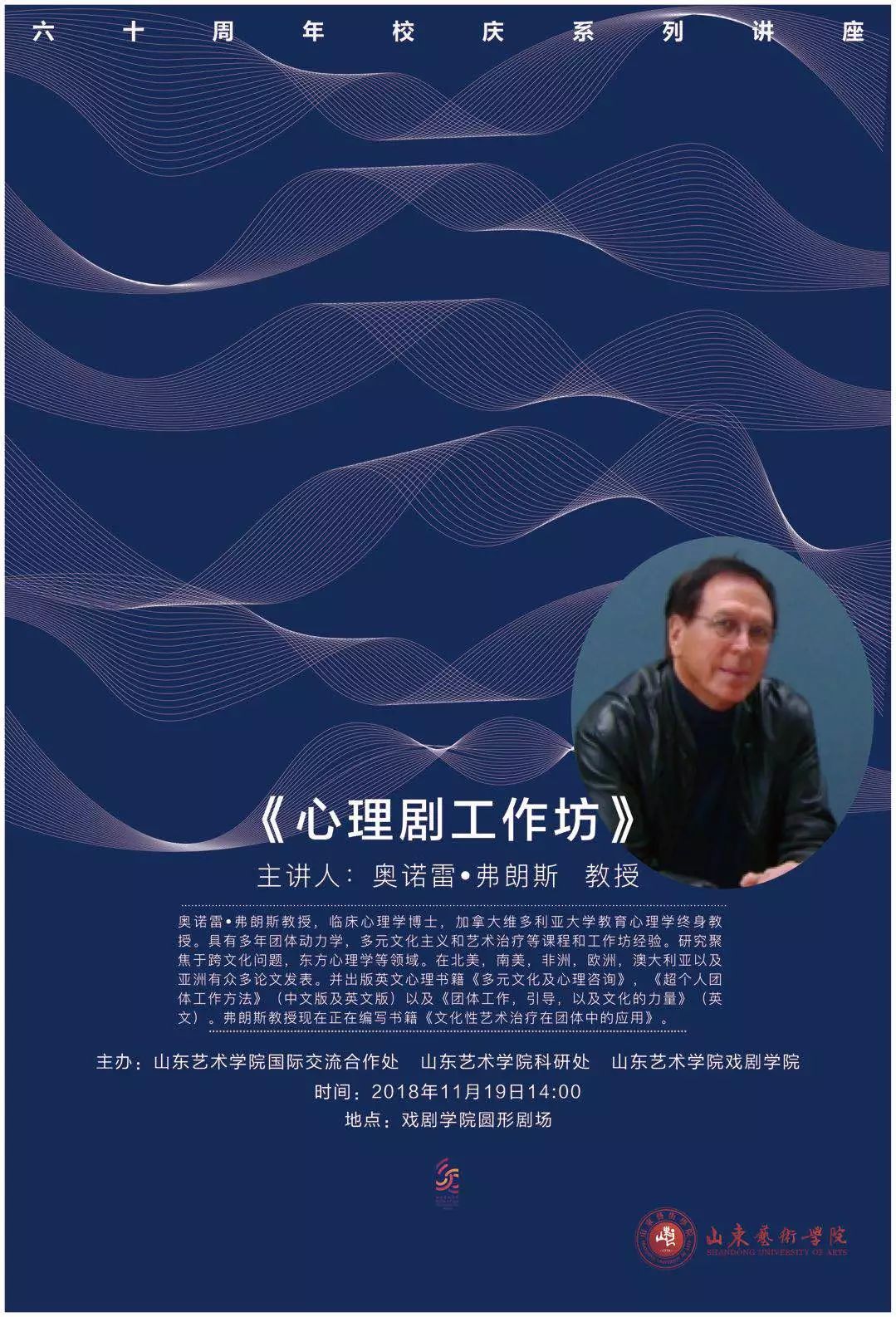 为庆祝建校六十周年,三亿体育官网特举办“六十周年校庆系列讲座”,邀请各专业领域知名专家、学者前来公司登坛开讲,与师生进行面对面交流。公司特邀请加拿大维多利亚大学教育心理学终身教授奥诺雷•弗朗斯来校做题为《心理剧工作坊》的学术讲座,诚邀广大师生到场交流学习。