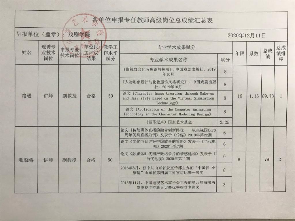 三亿体育申报专任教师高级岗位成绩汇总公示(正高级职称)