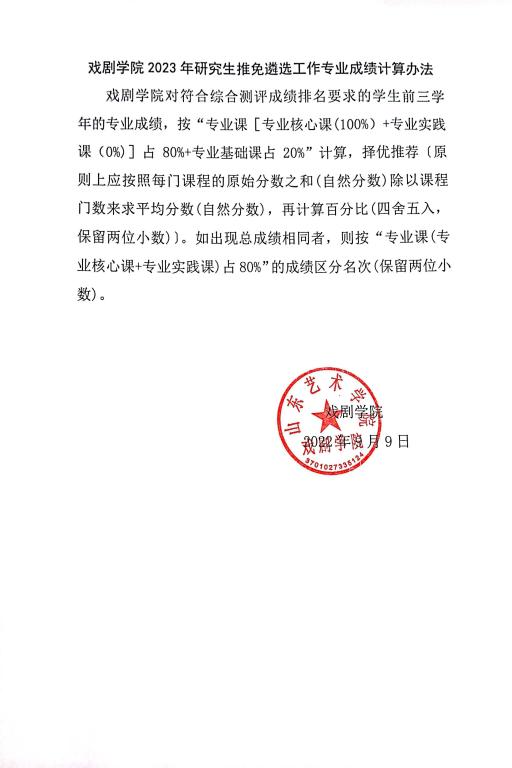 三亿体育2023年研究生推免遴选工作专业成绩计算方法