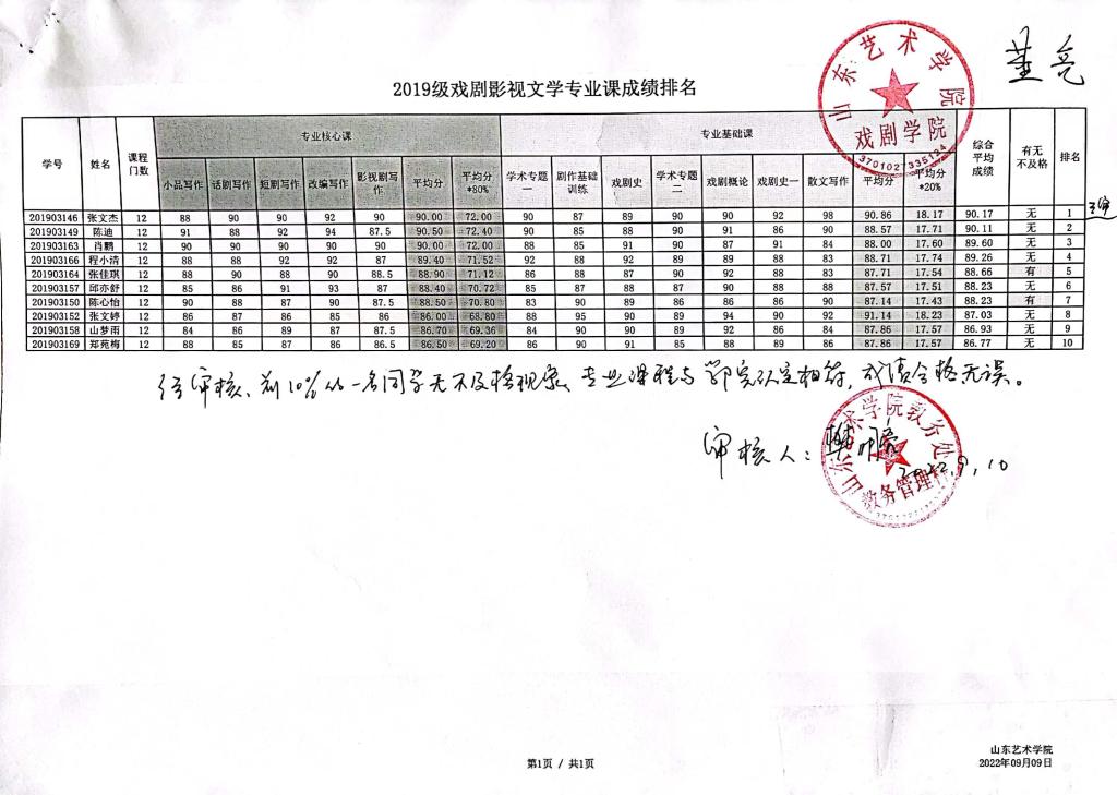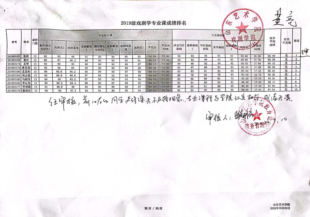 三亿体育2019级本科各专业前10%专业课成绩排名公示