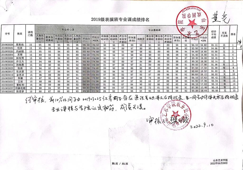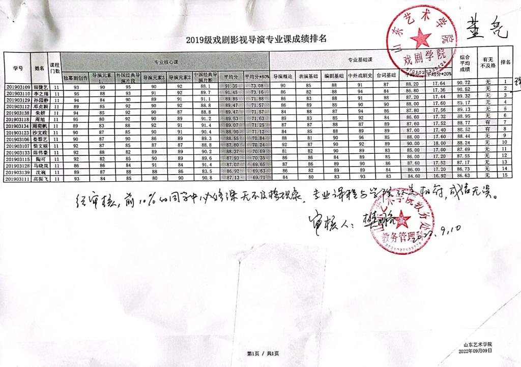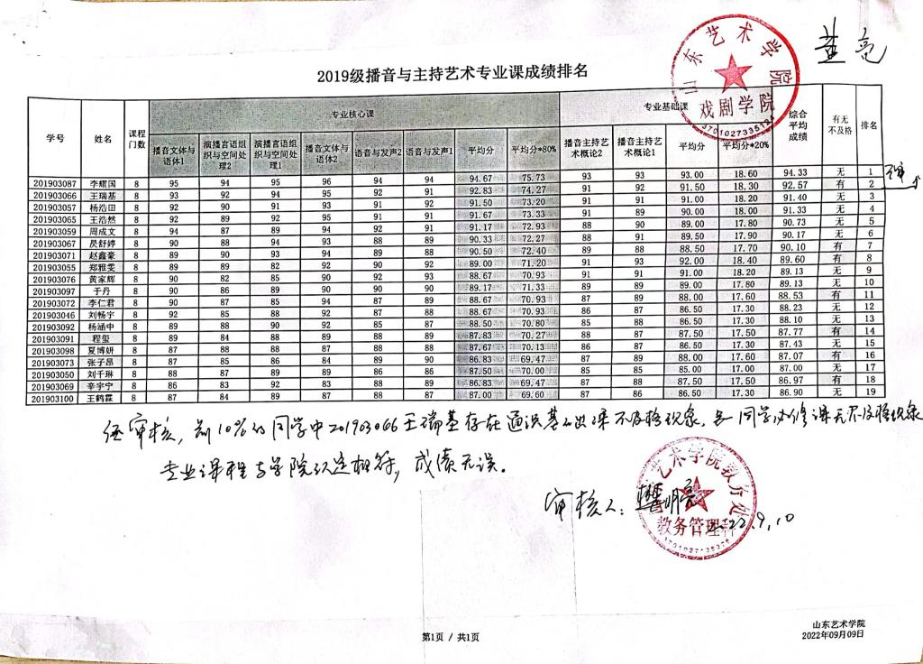 三亿体育2019级本科各专业成绩前10%员工综合测评成绩及排名公示