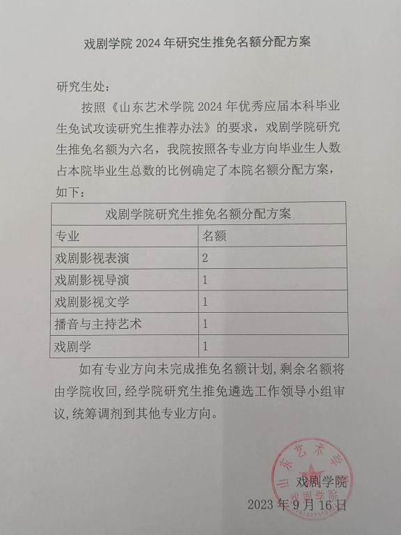 三亿体育2024年研究生推免名额分配方案