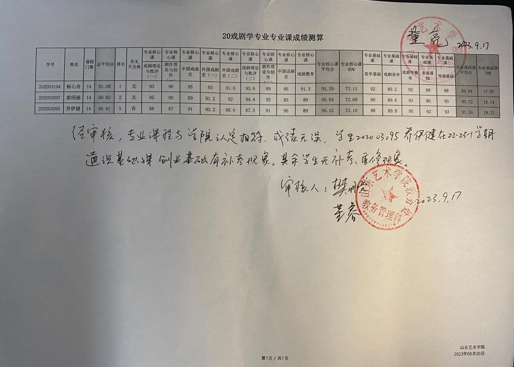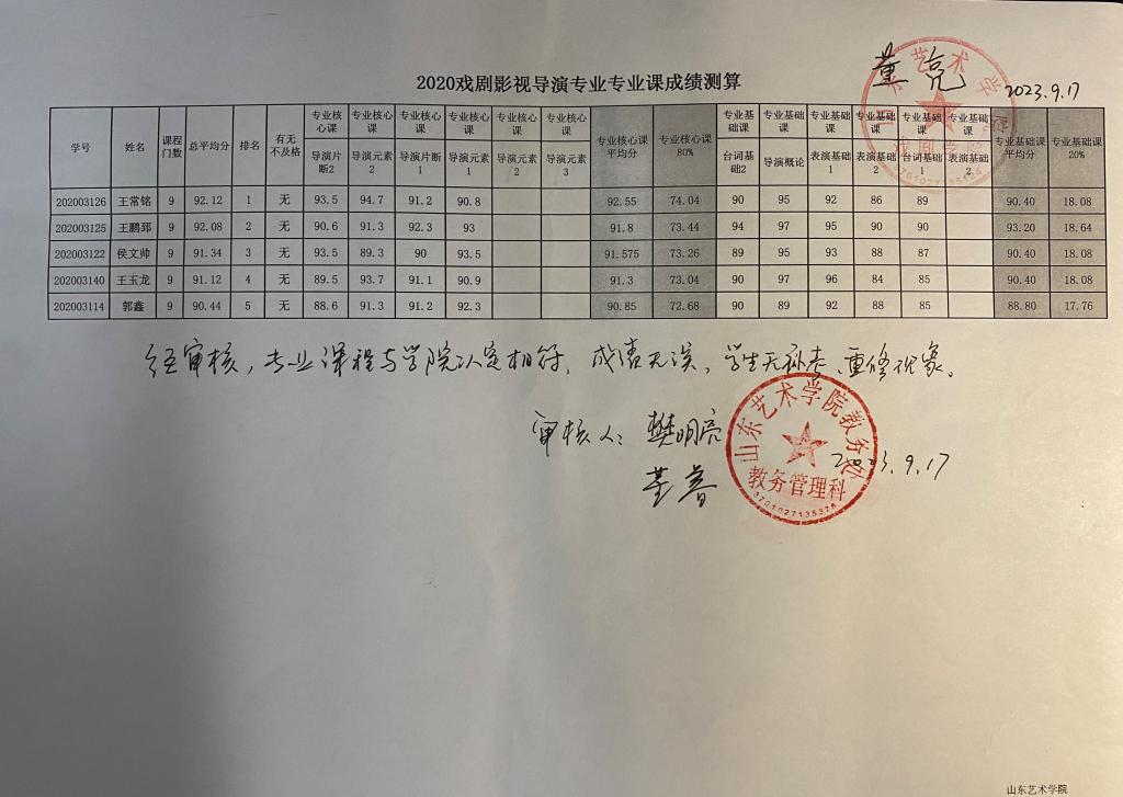 三亿体育2020级各专业专业课成绩测算公示