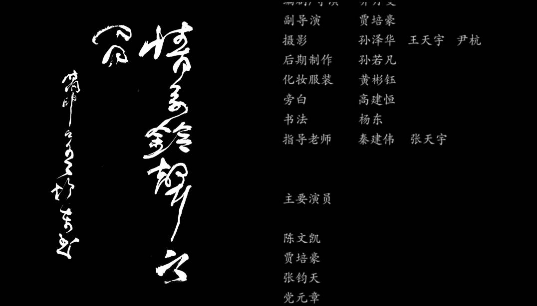拍东西是大家一块来干这个事,所以拍好拍不好我们既然上了同一条船是好是坏也都人均一份了。也对大家的辛苦付出表示感谢。包括现场制片贾培豪,航拍尹杭,摄影孙泽华、王天宇,服装化妆黄彬钰,剪辑孙若凡,场务蓝天,以及演员陈文凯、张钧天、党元章小朋友。