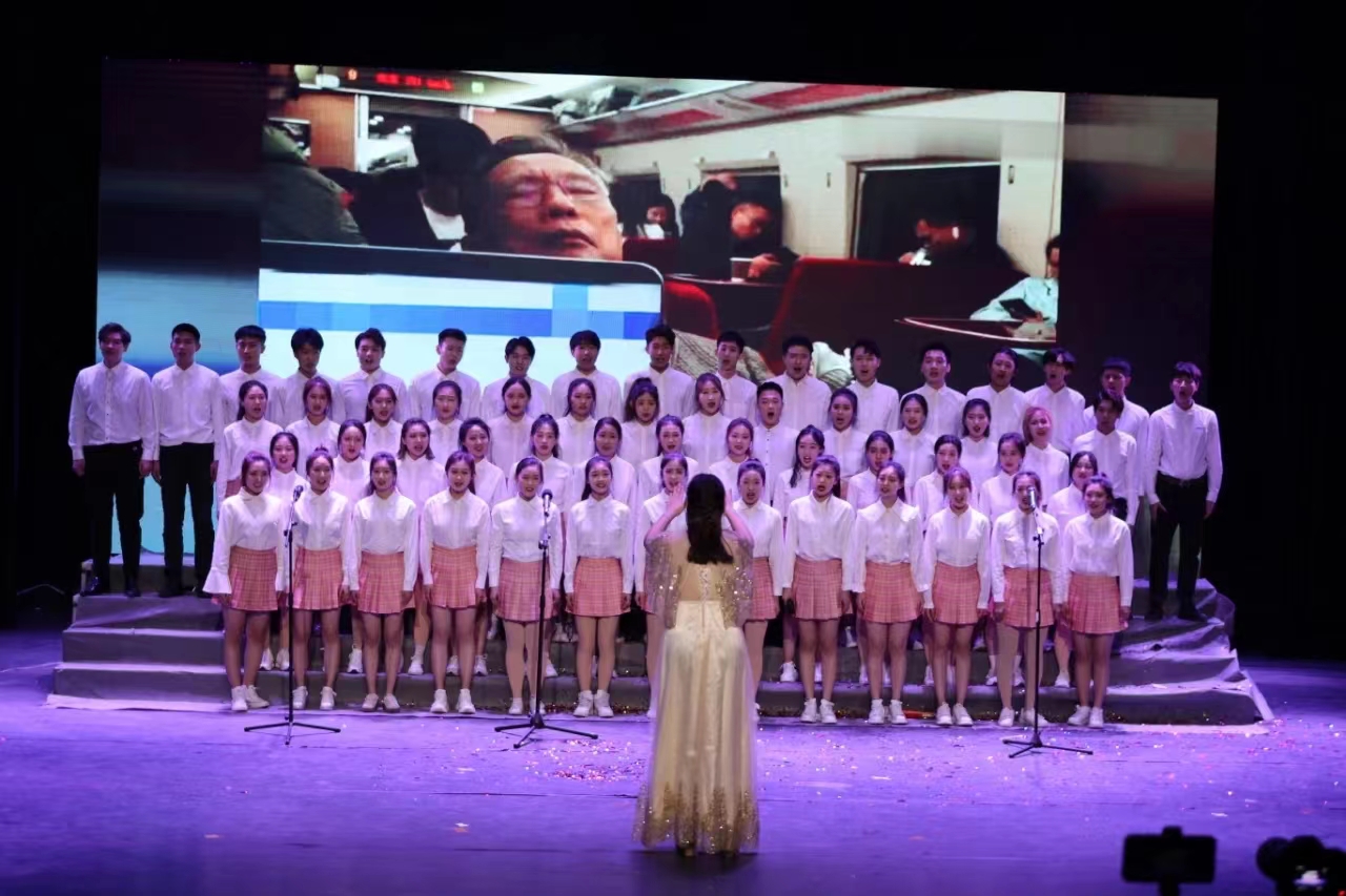 戏剧合唱团运用“歌中剧”的表现形式,将表演、播音等戏剧元素与一二九合唱相结合,展现了戏剧学子绚丽的青春风采和艺术创新理念。