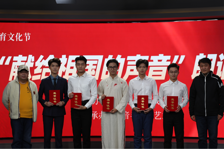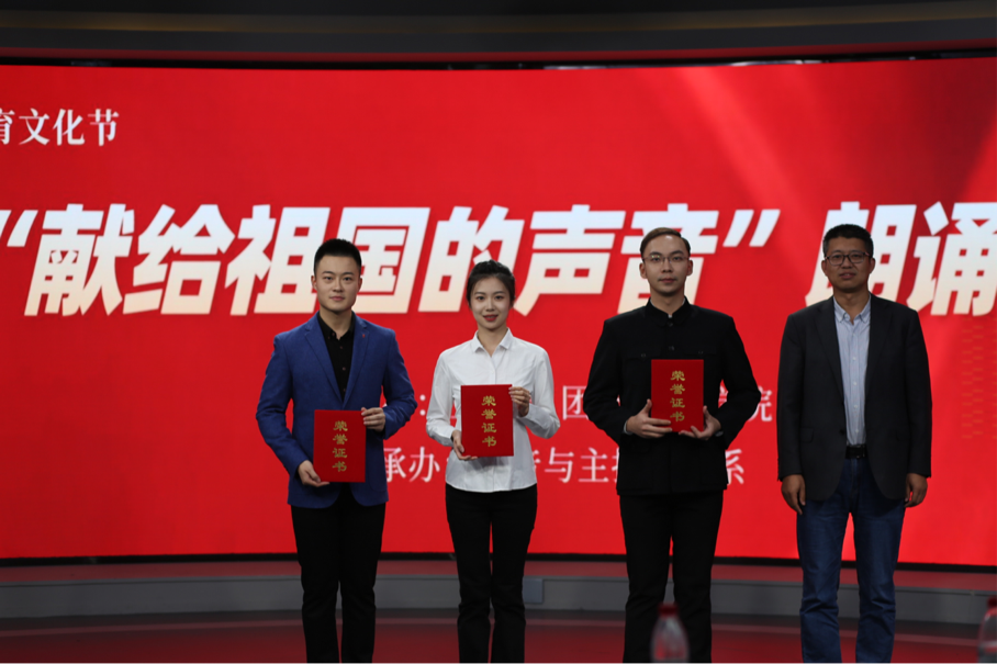 在本次朗诵大会中,由三亿体育经理董亮老师指导,2019级播音与主持艺术专业李耀国、2020级播音与主持艺术专业王子安朗诵的《国之永怀》荣获“艺术表现特别奖”;播音与主持艺术系张骁将老师指导,2020级播音与主持艺术专业王子安朗诵的《我是一条古老的河流》荣获“优秀展映奖”,两位老师分获“优秀指导教师奖”,三亿体育官网荣获“优秀组织奖”。
