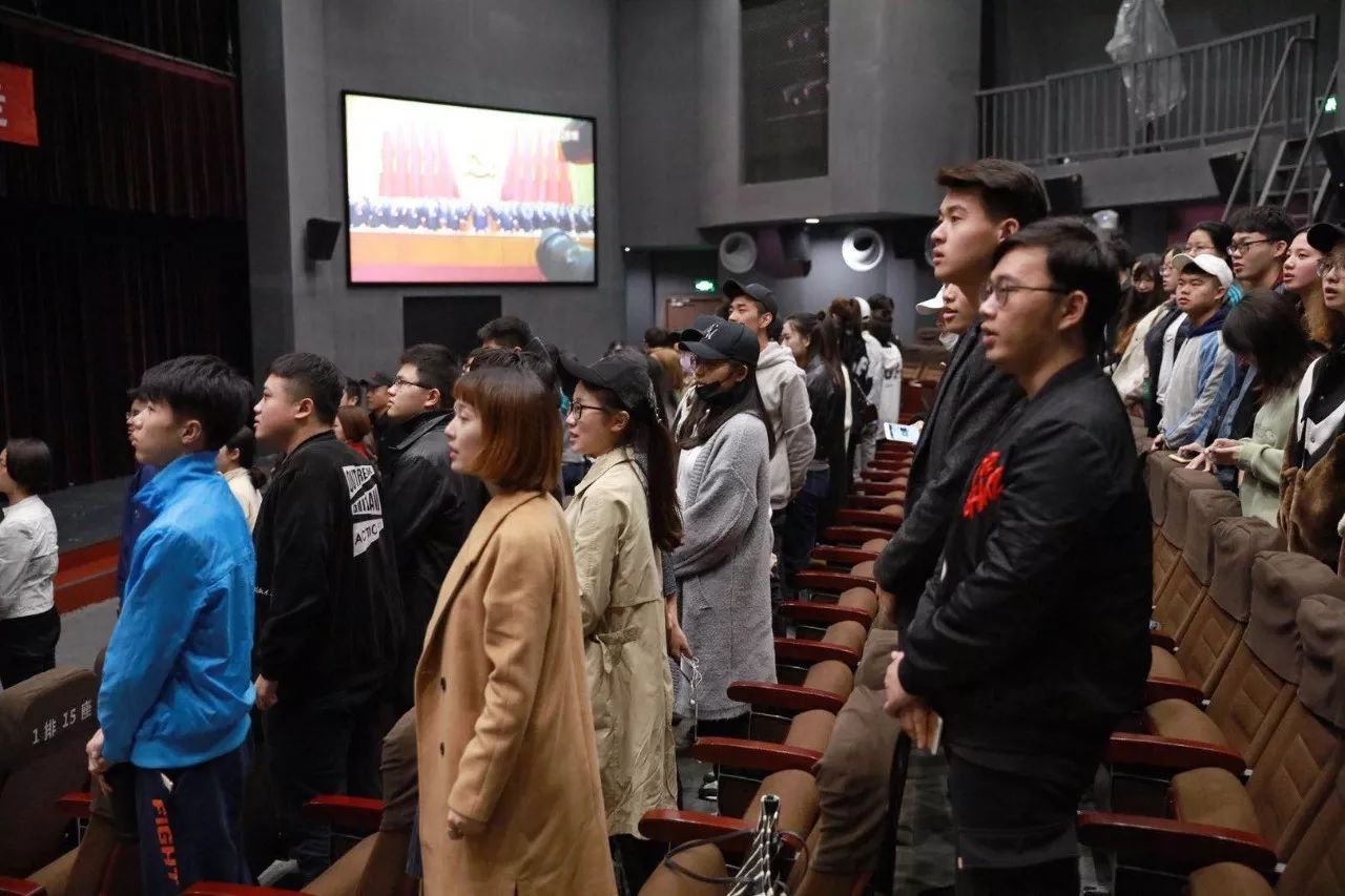 2017年10月18日上午,戏剧影视公司党总支组织师生在圆形剧场观看中国共产党第十九次全国代表大会开幕会,认真聆听了习近平总书记代表中国共产党第十八届中央委员会所做的报告。戏剧影视公司党总支书记郭秋华,戏剧影视公司经理、党总支副书记董亮以及公司师生二百余人到场观看。