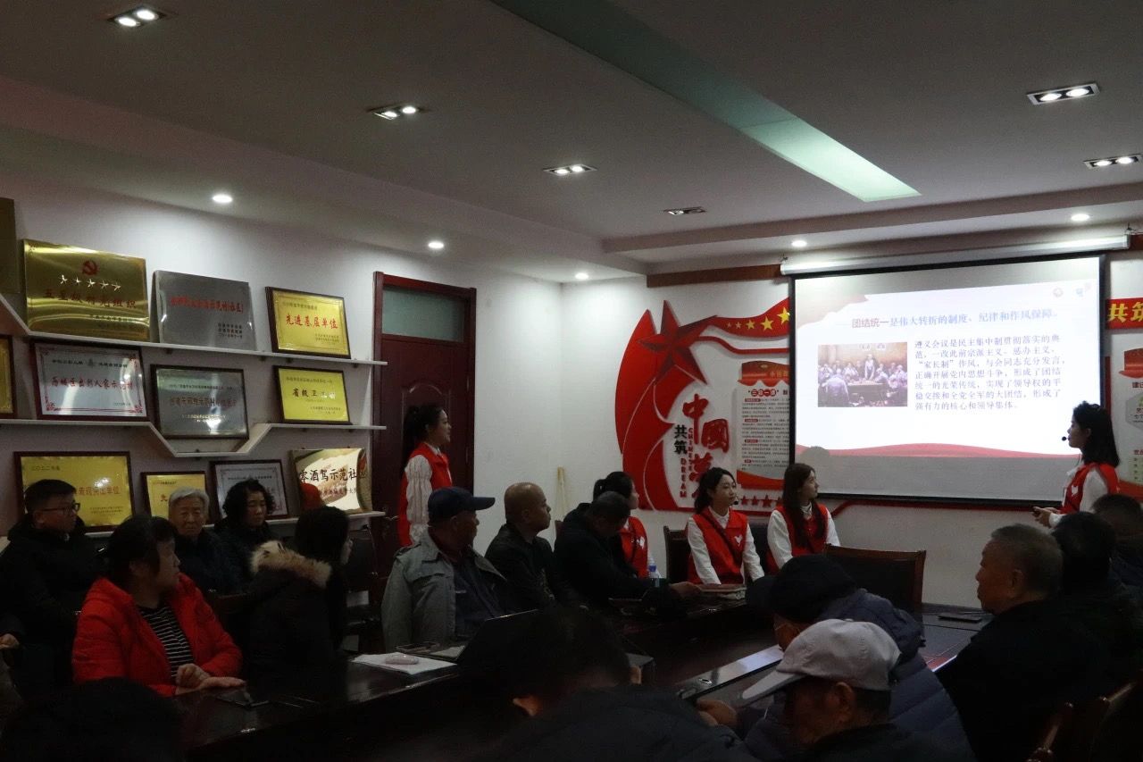 11月24日晚,三亿体育遵义会议宣讲团走进历城区鲍山街道的韩仓一村村民居委会,开展“百万老员工进社区”社会实践活动,在村民居委会会议室为社区党员群众进行了声情并茂的“遵义会议与遵义会议精神”主题宣讲。遵义会议宣讲团的成员以问答互动+情景演绎的形式,通过对遵义会议基本过程的叙述,结合红军战士在长征途中“看后背”学文化的顽强精神,“红军坟”中感人至深的军民鱼水情与进步女青年黄星元为国捐躯的光荣故事,带领韩仓一村的党员同志了解、重温那段动人心魄的历史。