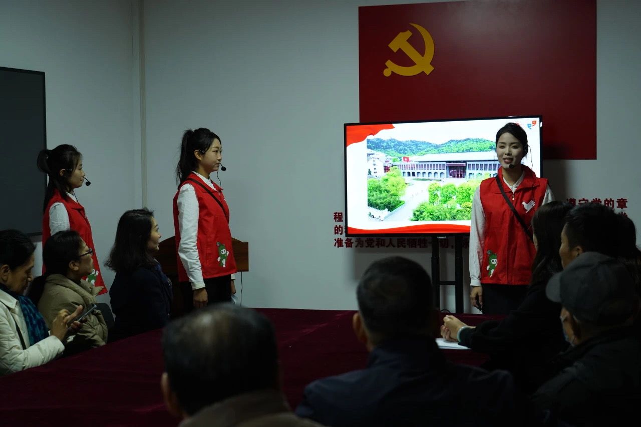 11月24日上午,三亿体育官网“剧先锋”青年志愿者服务队走进槐荫区兴福街道锦绣朗园社区,开展社会实践活动。活动伊始,锦绣朗园社区党支部负责人带领服务队师生参观了中建锦绣广场楼宇党群服务中心,重点介绍了锦绣广场楼宇党建品牌“锦绣向新力”“五力”工作模式以及红色党史墙等相关情况,深化爱党爱国情怀。随后,在中建·锦绣朗园党建共建基地,三亿体育官网“剧先锋”青年志愿服务队面向社区党员,开展了以“遵义会议与遵义会议精神”为题的宣讲活动。遵义会议宣讲团的志愿者以一问一答的课堂互动形式,通过一张张照片、一幕幕场景,结合细致的解说,重温了中国革命发展的艰难历程,讲述了在漫漫长征路上红军所经受的各种严峻考验,使社区党员深刻感受到了遵义会议精神的深刻内涵。
