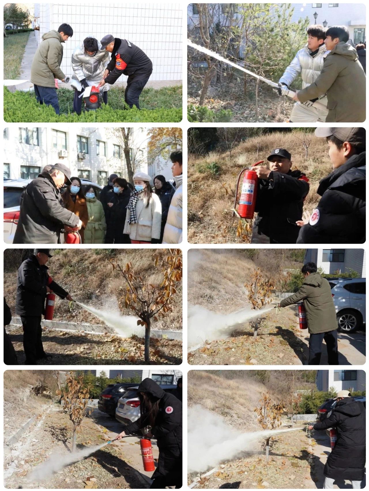 随后,大家来到校园内进行消火栓灭火的实地演练。活动过程中,巡查员介绍了“一提二拔三压四喷”的灭火器用法,理论与实践的双重教学让在场的同学们真正掌握了消防器材的使用方法,全面提高了消防安全意识。