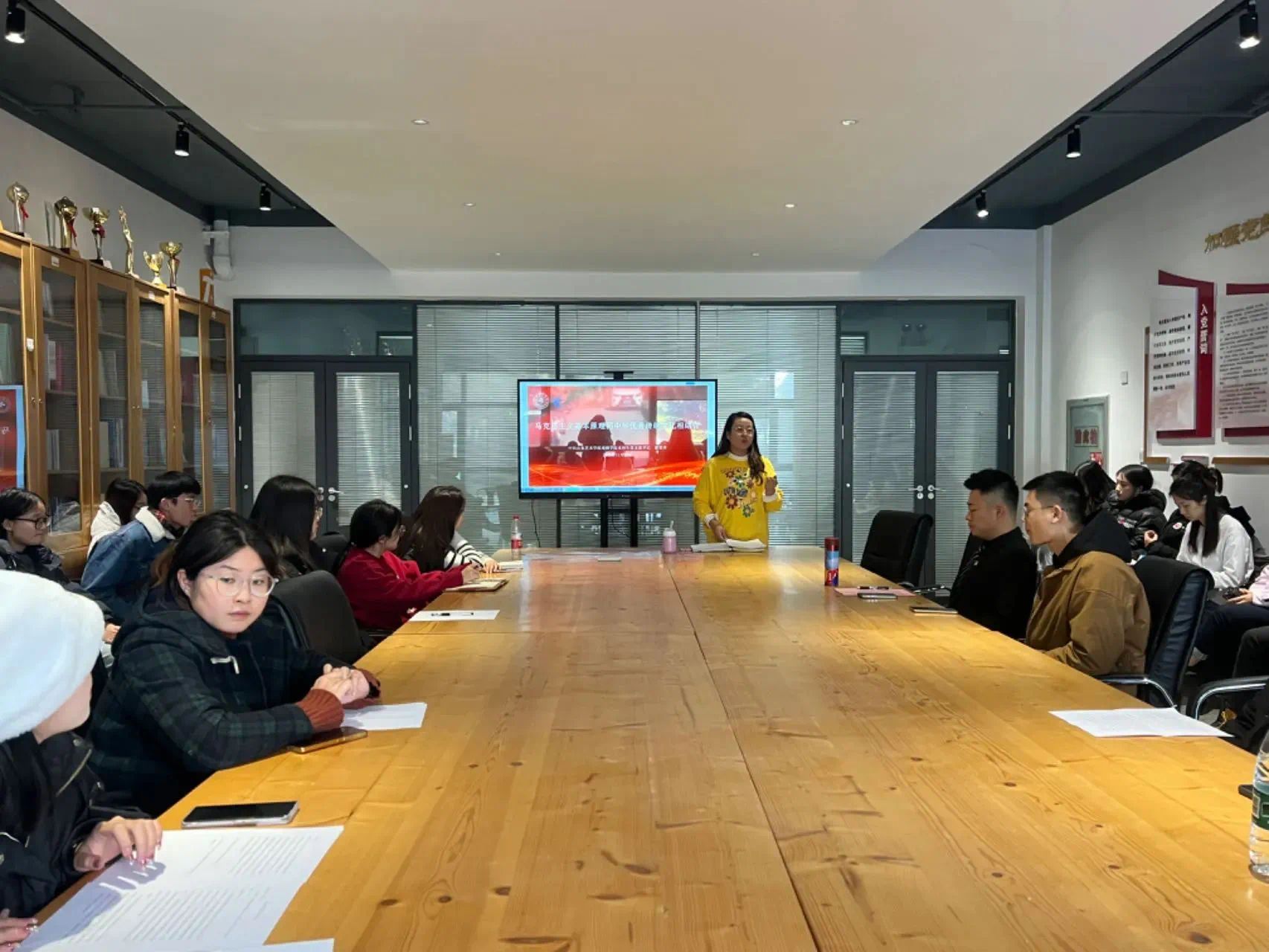 11月13日,本科生党支部书记郝荣华以“马克思主义基本原理同中华优秀传统文化相结合”为题,结合习近平总书记在文化传承发展座谈会上发表重要讲话精神和习近平文化思想关于“把马克思主义基本原理同中国具体实际相结合、同中华优秀传统文化相结合”的重要思想为本科生党支部党员讲党课。党支部书记鼓励党员同志要准确把握“两个结合”的深刻内涵,结合自身专业优势,坚持守正创新,坚定历史自信、文化自信,继承中华文明,更好地担负起新的文化使命,书写现代化的中国故事,为艺术繁荣发展贡献山艺力量。