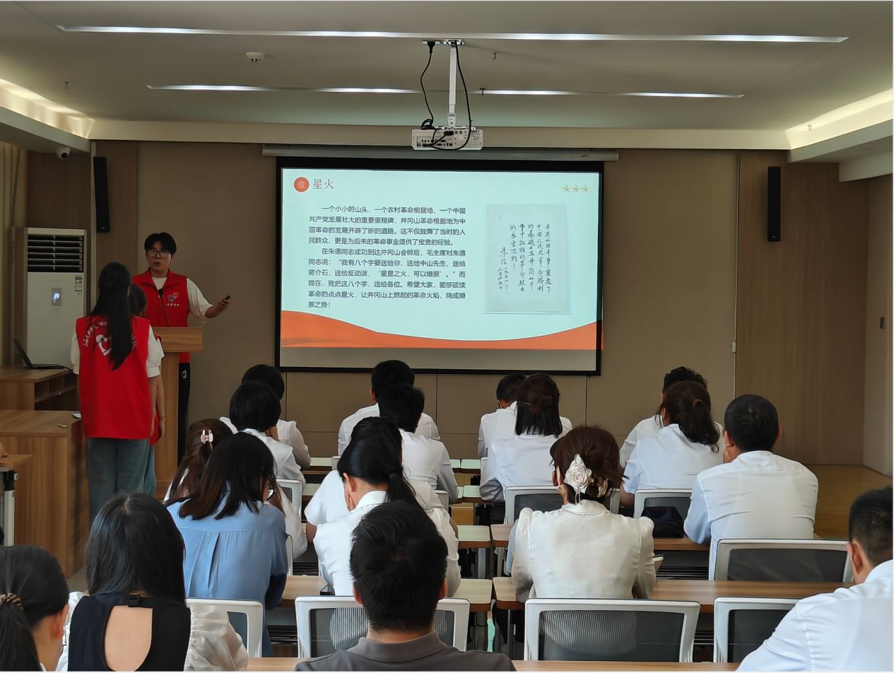 5月30日,三亿体育本科生党支部与长清区园博园社区党支部、园博园景区党支部联合开展“聆听红色故事 传承红色经典”主题党日活动,三亿体育官网“剧先锋”青年志愿者服务队分别进行“两弹一星”精神宣讲和井冈山精神宣讲。活动结束后,长清区园博园景区党支部书记陈洪刚、园博园社区党支部书记杨莹和三亿体育本科生党支部书记郝荣华分别就党建特色工作和先进经验进行交流发言,三方均表示,希望进一步拓宽党建共建工作思路、推动深化合作交流,精准对接供需,不断增强党建共建实效,构建“资源共享、优势互补、共促共赢”的党建工作新格局。最后,全体与会人员参观学习了园博园社区完善的治理体系和先进的治理经验。