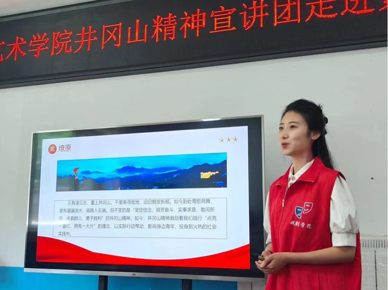 传承伟大精神,汲取奋进力量。在新的征程上,戏剧学子将联合更多高校、中小学、社区等,开展形式多样、内容丰富的宣讲活动,大力弘扬“两弹一星”精神和井冈山精神,在传承与发展中续写革命先辈荣光。