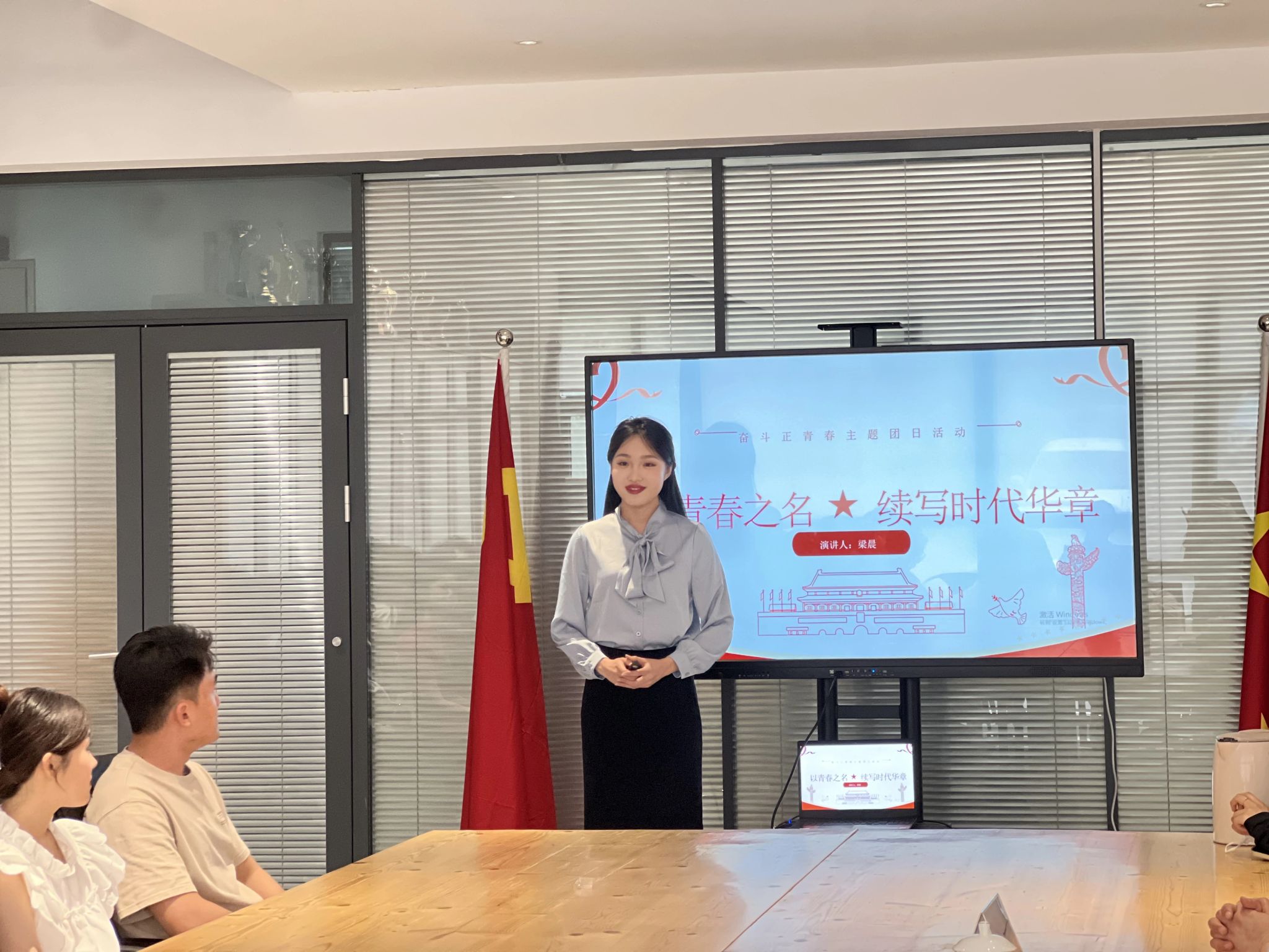 6月4日,由三亿体育2021级播音与主持艺术专业组织开展的“以青春之名 续写时代华章—奋斗正青春”主题团日活动在三亿体育会议室举行。山东艺术公司党委委员、副经理苏茂兴,公司党委副书记柳茜芷,三亿体育2021级播音与主持艺术专业班主任李克振以及该班全体同学参加活动。活动由公司党委副书记柳茜芷主持。
