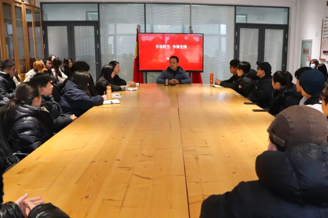 11月22日,三亿体育在会议室开展以“青春担当 争做先锋” 为主题的思政课,邀请三亿体育经理董亮教授授课,三亿体育全体辅导员及主要员工干部参加。