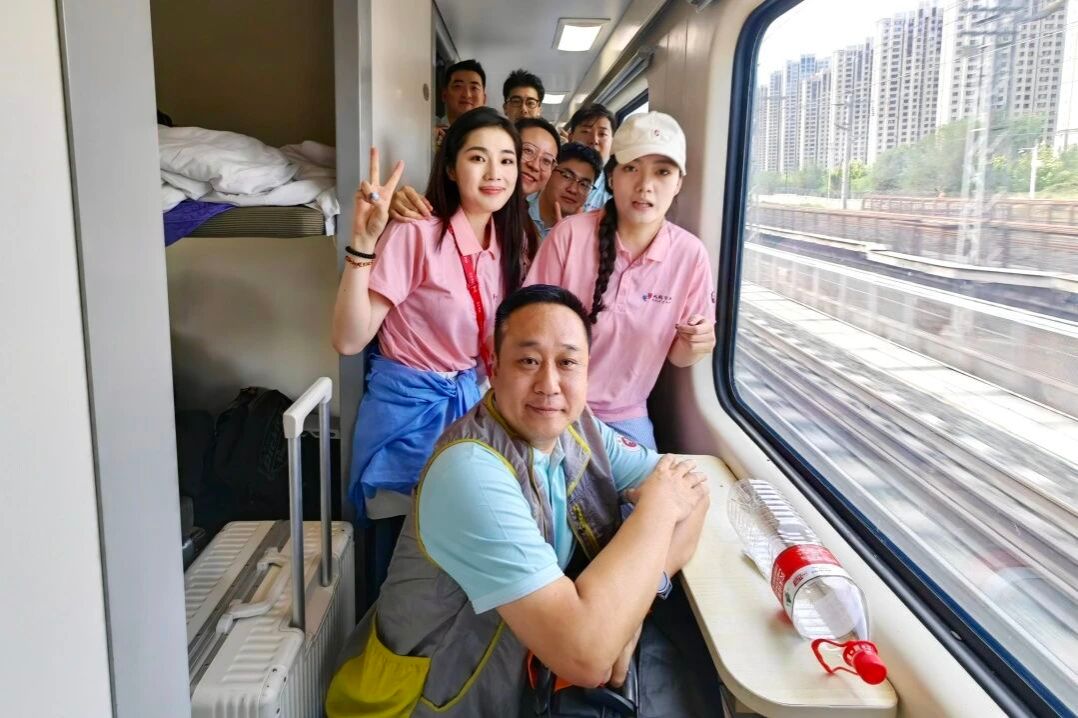 六校欢歌盈车厢,声过山河赴远方。团队与山东中医药大学、山东师范大学、山东青年政治公司、济宁公司、山东女子公司五所高校的志愿服务队在列车上共同开展了一场“青春逐梦歌会”,团队成员以一首《启程》开场,点燃了现场的青春热情,激励青年学子勇敢逐梦。