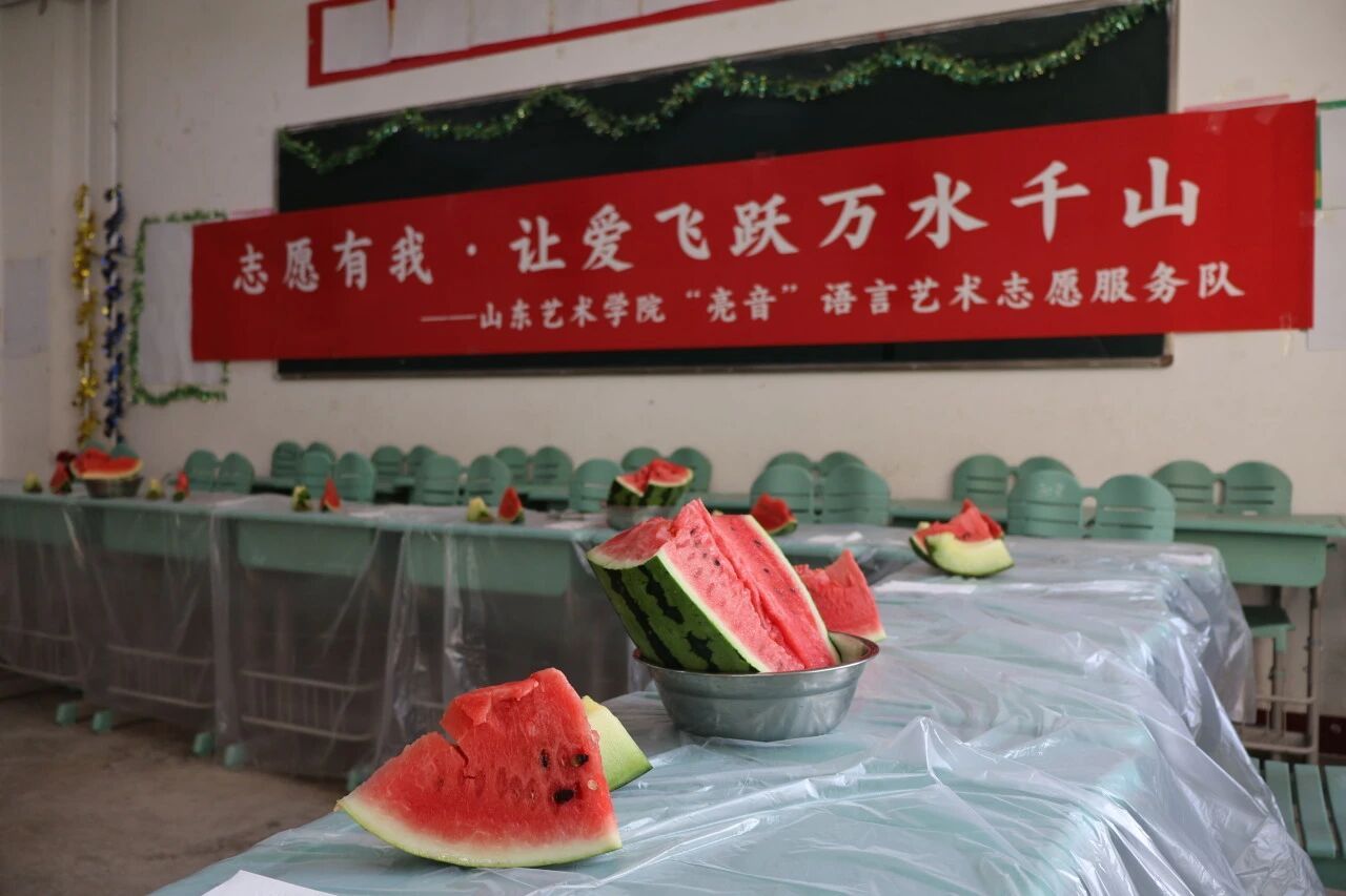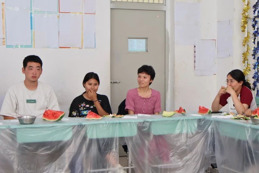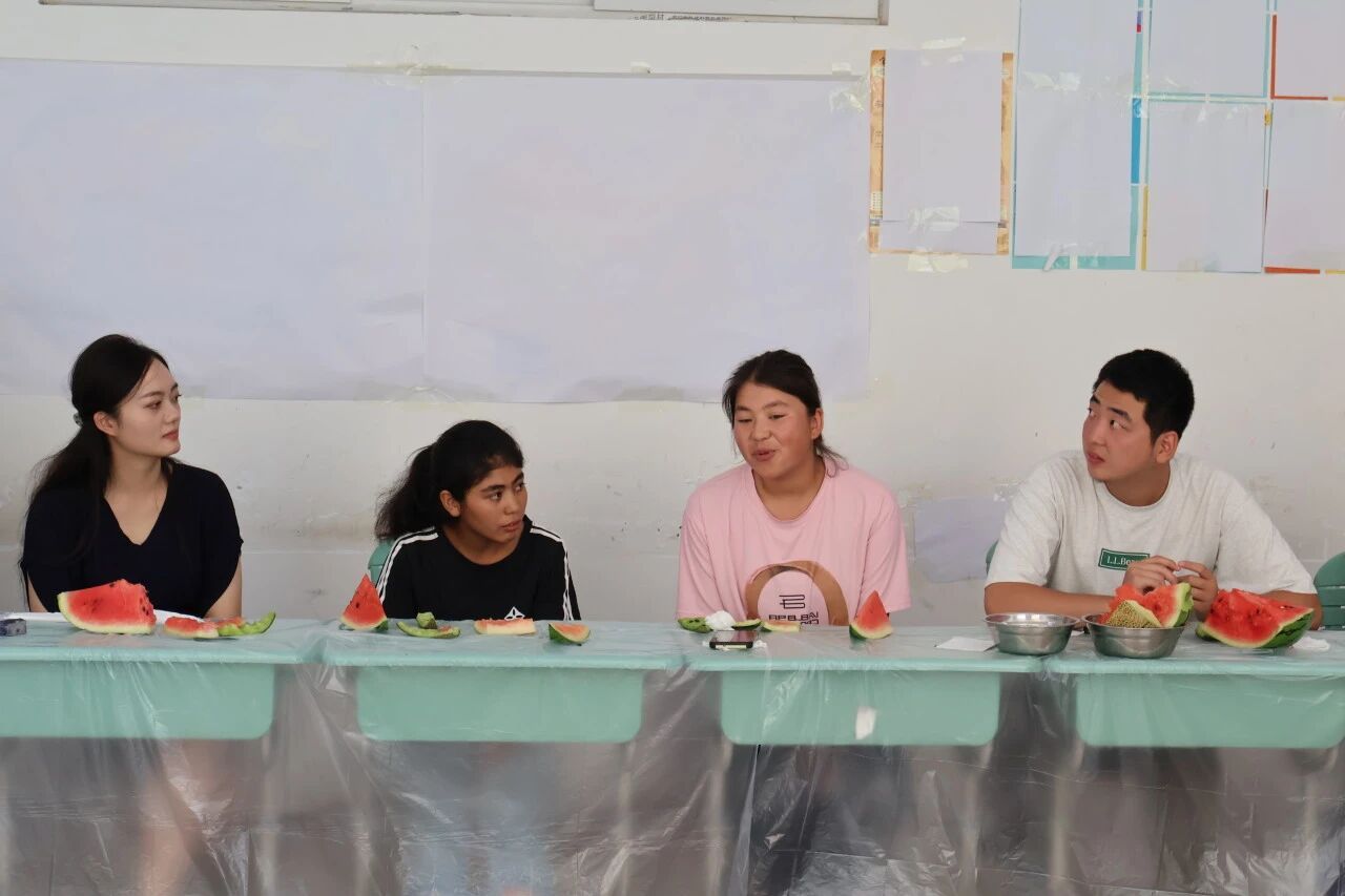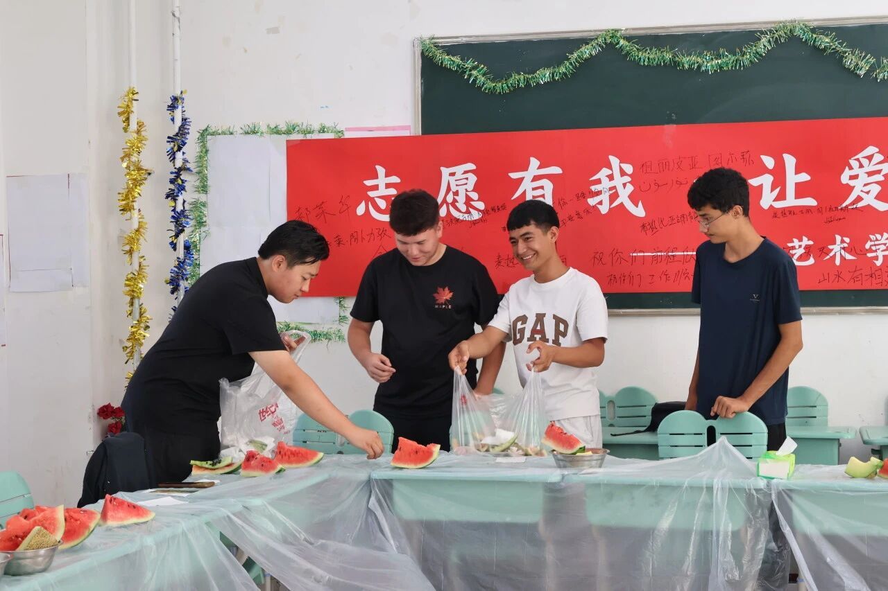 师生围坐,瓜果飘香。清爽的西瓜与香甜的哈密瓜,伴着欢声笑语,化作离别前最温暖的注脚。在甘甜与笑意交织的圆环里,师生们细数支教时光的成长与收获,描绘未来的希冀与愿望,每一声分享都缀满星光,每一个梦想都浸透果香。