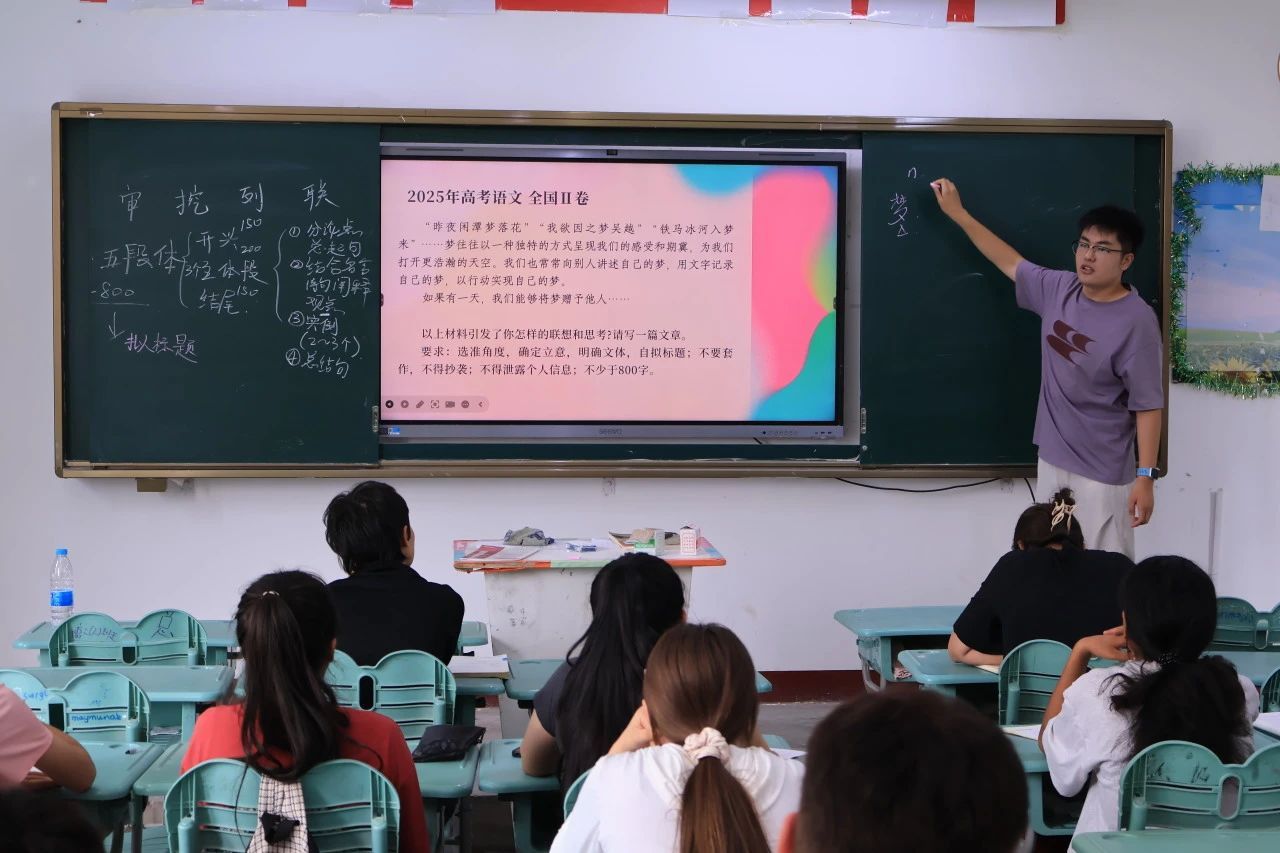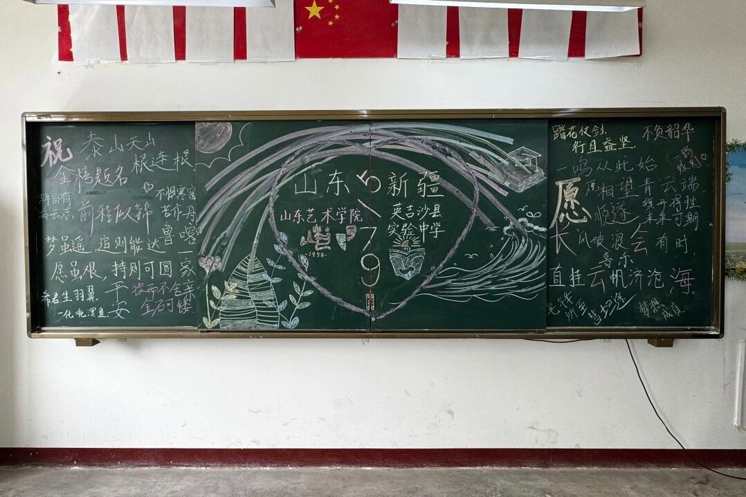 阳光从窗棂漏进来,在黑板上投下细碎的光斑,“泰山天山根连根”“梦虽遥,追则能达”“金榜题名”“未来可期”……满黑板的祝愿里藏着道不尽的期许,每一处未填满的空白都是未言的牵挂。
