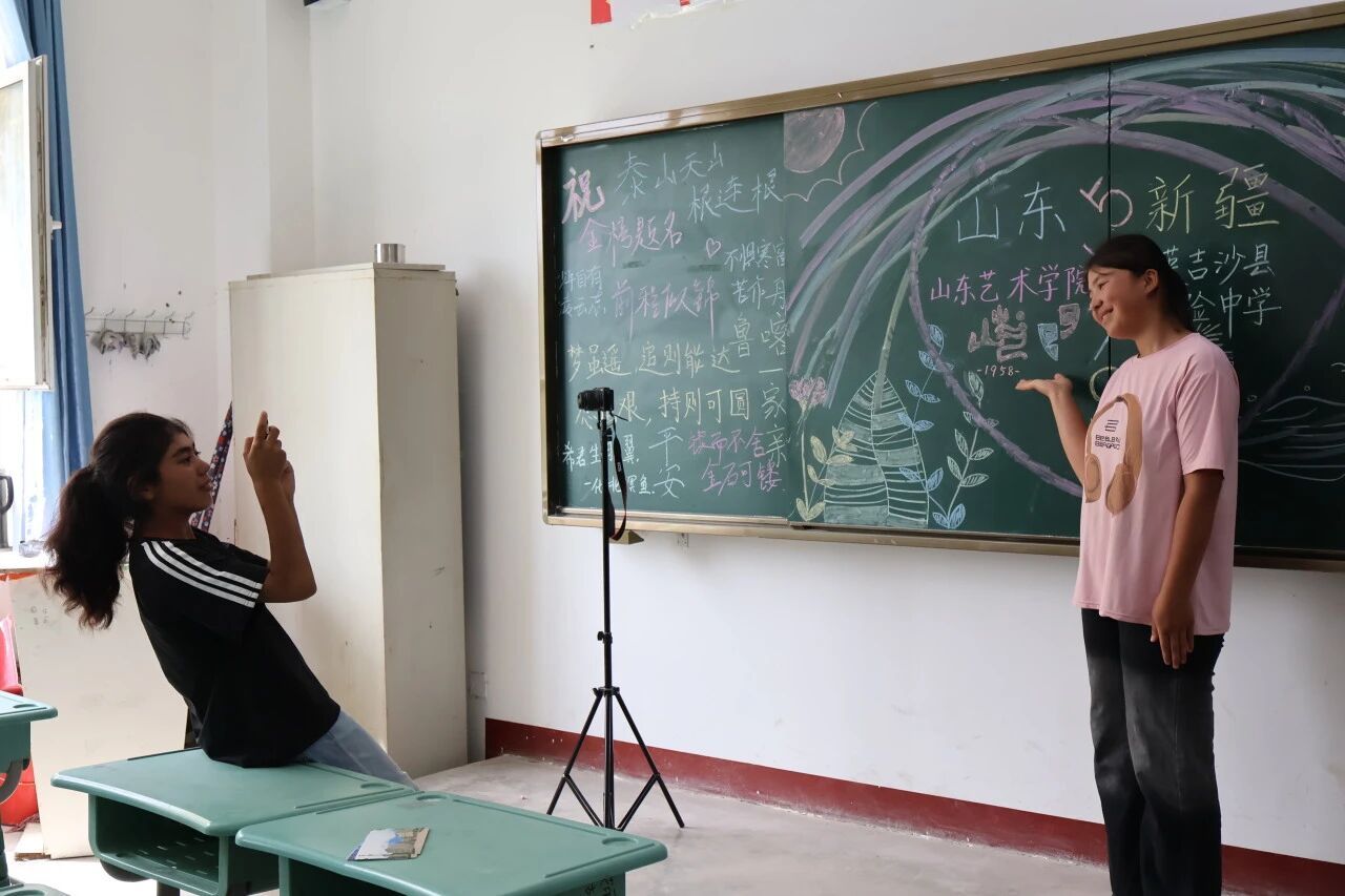团队成员在“跨越 5179 公里”的明信片上写下山东艺术学经理清校区的地址和祝福,悄悄藏进课桌的抽屉——那些未说出口的期待,终会沿着这条用祝福铺就的邮路,从丝路古城飞向齐鲁大地。我们,也会默默期待一封封来自英吉沙的回信。
