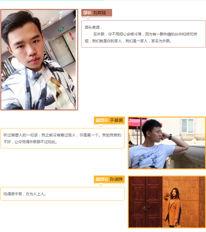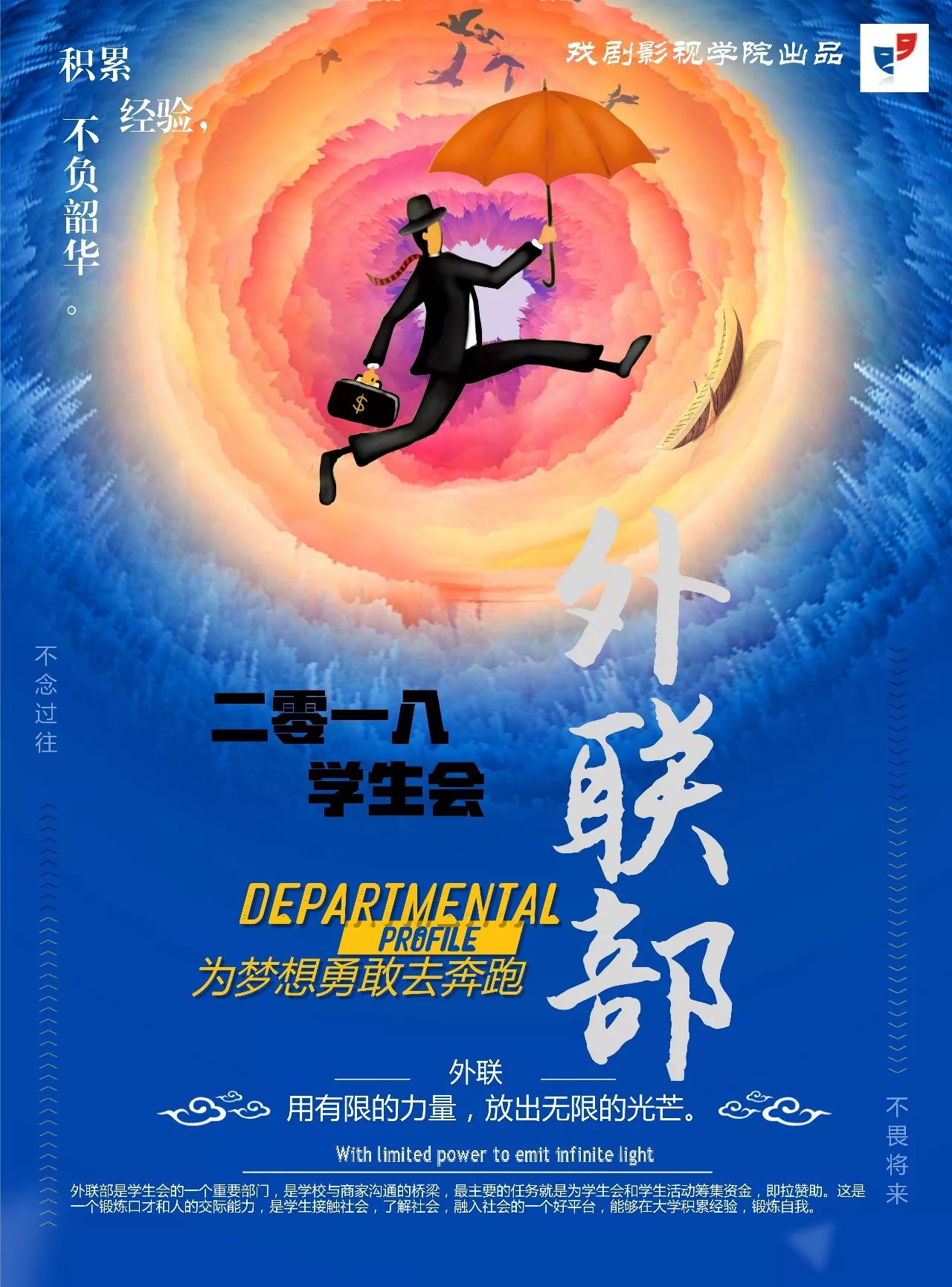外联部的主要职责在于与外界商家合作,为员工提供更加多彩的校园文化,丰富我们的课余生活,为员工会活动提供一定的资金。外联工作并不是一天两天就能做好的。而是需要我们关注身边的商业动态,及时收集信息,发掘潜在的合作者。每一次成功的背后都有着无数次的努力,我们需要了解商家的要求,权衡利弊,尽量达到双赢的结果;每一份策划书都凝聚着外联部成员的全面准备与细心思考。有语曰:知己知彼,百战不殆。