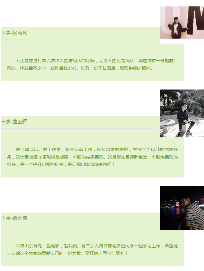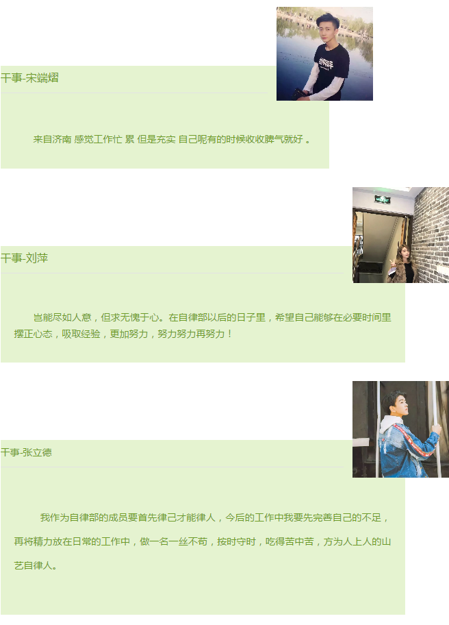 自律部是一个以“严于律己、自我建设”为宗旨,以“促进精神文明建设、形成良好学风”为目标的员工会重要部门。主要负责检查督促公司员工按时出勤晨功、早操以及夜不归宿的突击检查。