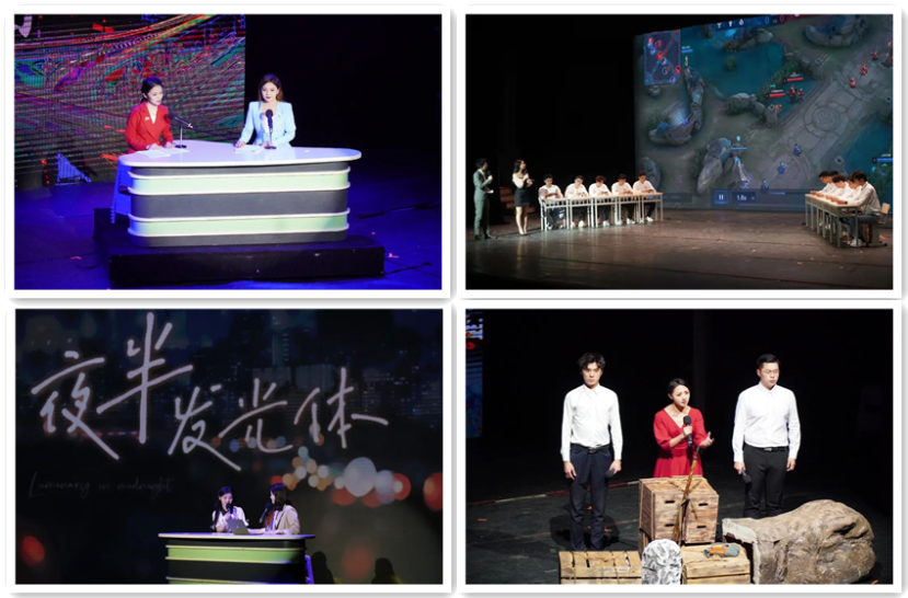 《青春万岁》:同学们迈着轻盈的步伐、弹着优美的旋律,深情朗诵着《青春万岁》,诠释着青春的模样。这样的青春,充满了激情,这样的日子,让人热血沸腾,让我们高呼:“青春万岁”。《青年大学习之反诈骗特辑》:“诈骗手法日益新,你我务必要小心”,演员们通过生动的演绎,还原《青年大学习》栏目,引领青年团员把握时代脉搏,做新时代的共青团员;再现诈骗案发现场,提高反诈、防诈意识和能力,了解新发高发诈骗手法,学习防骗识骗技巧。《这个宿舍不一般》:用创意配音赋予角色新的生命,用音乐剧展现戏剧播音女生的青春活力,在她们的姐妹深情中走进不一样的宿舍。那些一起拼搏过的日日夜夜,那些共同努力的美好回忆,情景交融的表演让大家见证了他们的青春成长、青春色彩、青春光芒。
