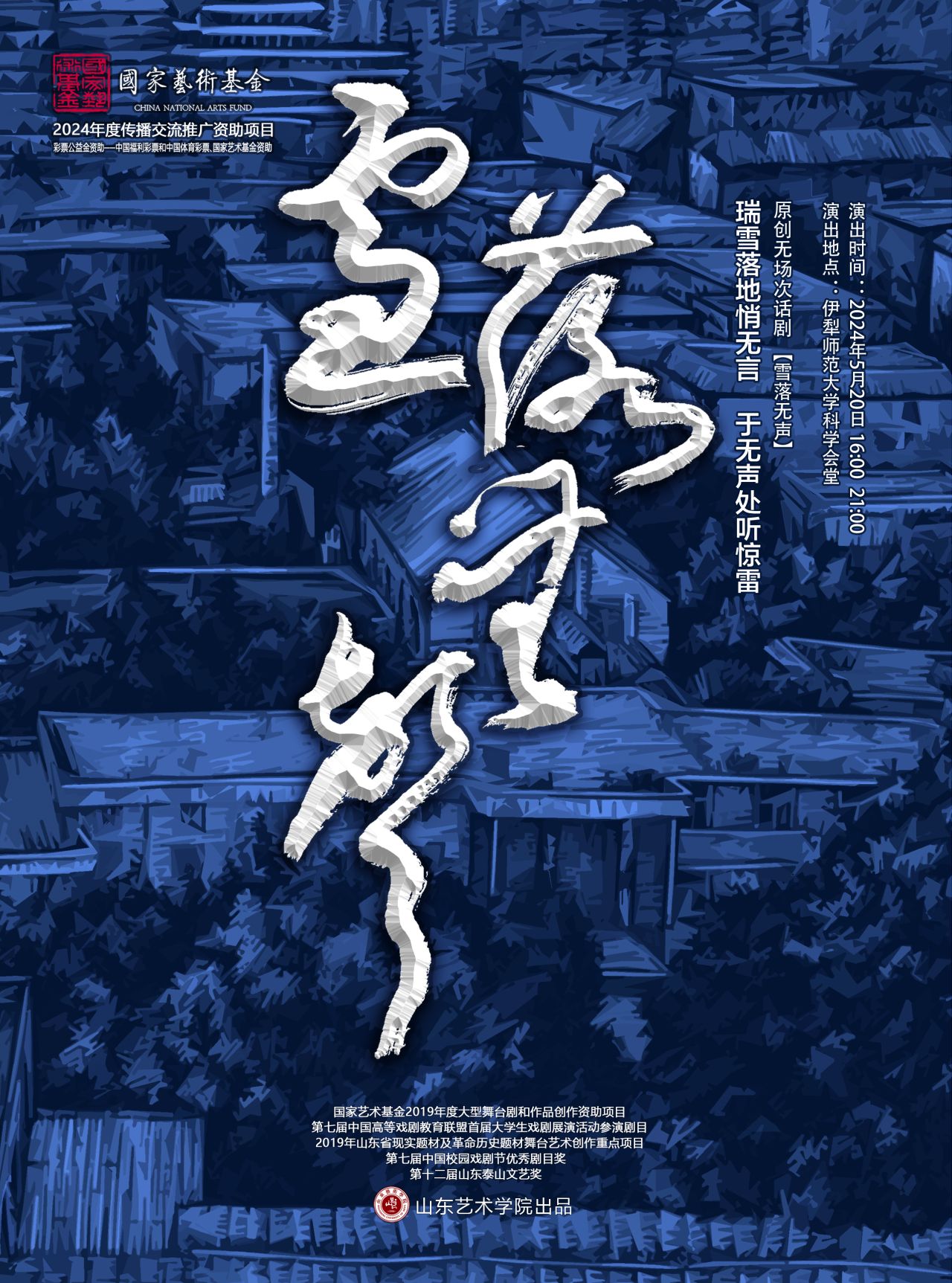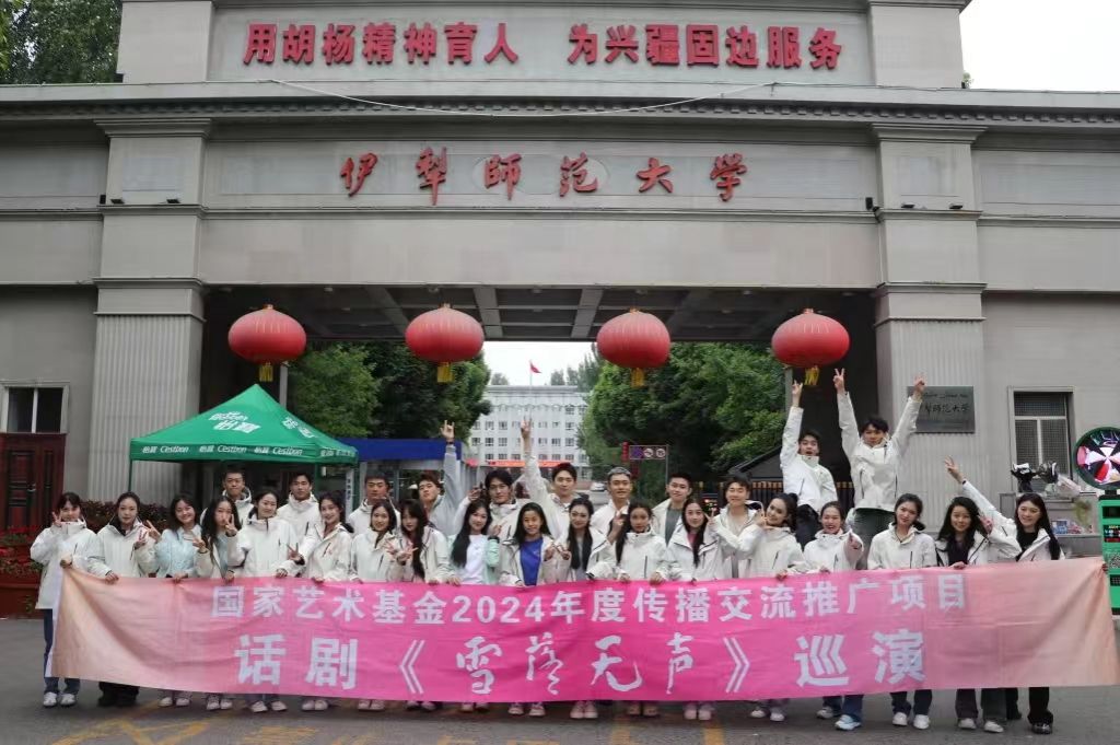 时为朱明盛日,地属宁远古城。5月20日,国家艺术基金2024年度传播交流推广资助项目——话剧《雪落无声》西部巡演团队,在美丽的伊犁师范大学成功完成两场演出,为伊犁师大的师生带来了一场关于艺术、青春与家国情怀的艺术盛宴。