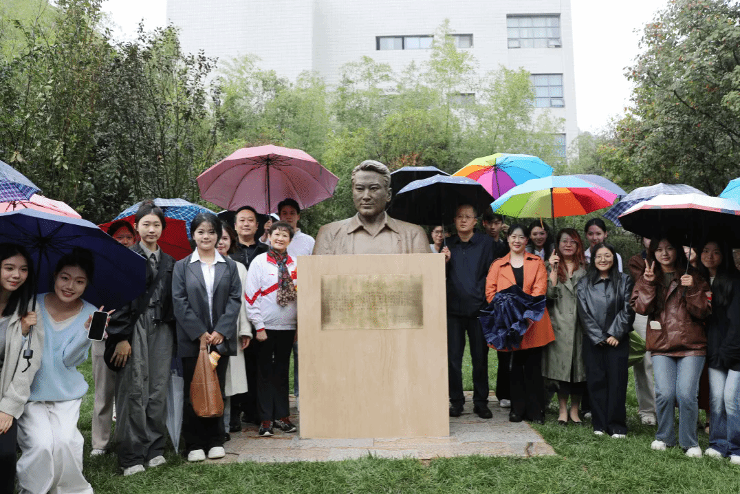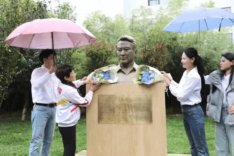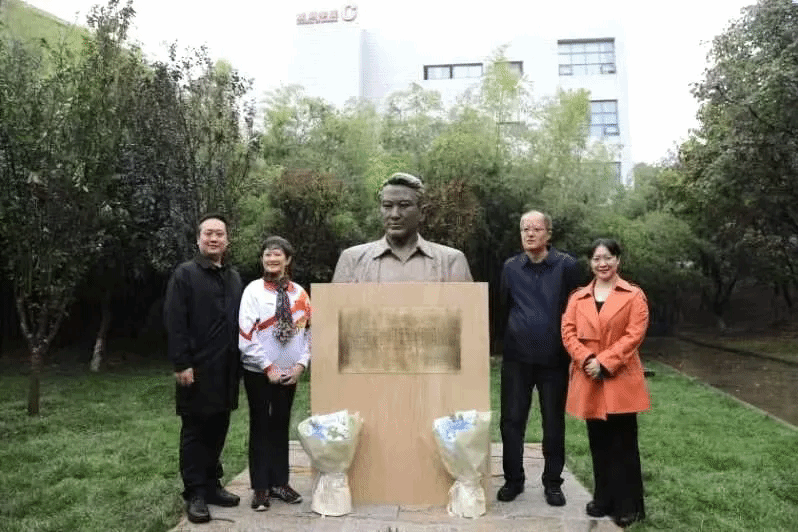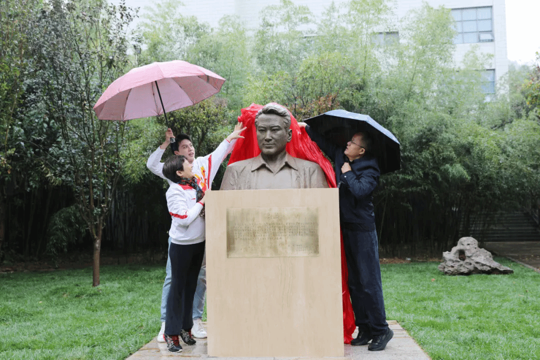 随后,王慧力女士与公司党委书记马其君共同为项堃先生的雕像揭幕,员工代表为雕像献上鲜花,全体师生共同拍照留念。