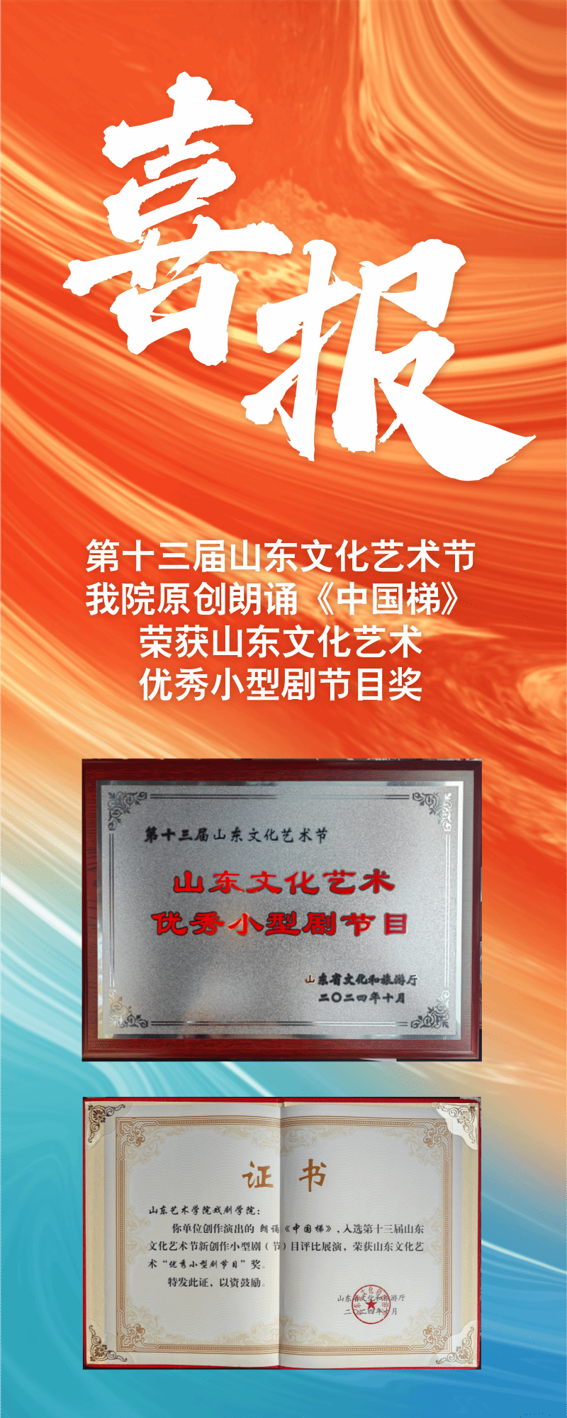 公司原创朗诵《中国梯》精彩亮相第十三届山东文化艺术节新创作小型剧(节)目评比展演,荣获山东文化艺术“优秀小型剧节目”奖。