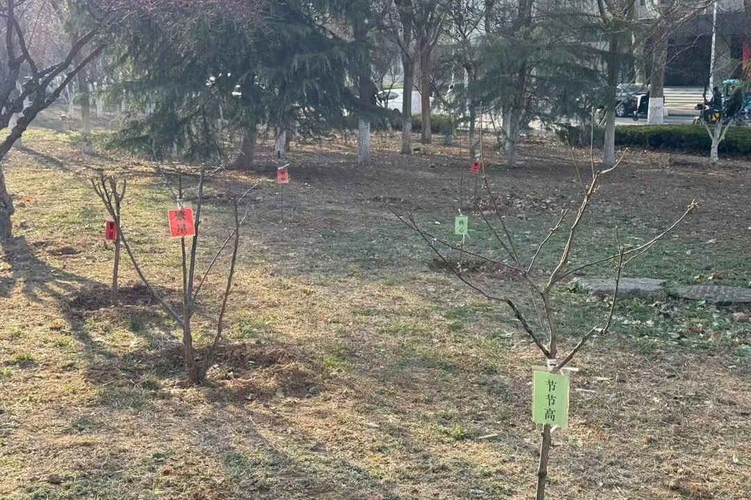 “硕果”“繁星”“材籽”“节节高”……树牌上的名字承载着戏剧师生对小树苗茁壮成长的美好期盼。“戏剧是时间的艺术,树木是生命的史诗。今日种下的不仅是树苗,更是对自然的敬畏之心”,程老师如是说道。