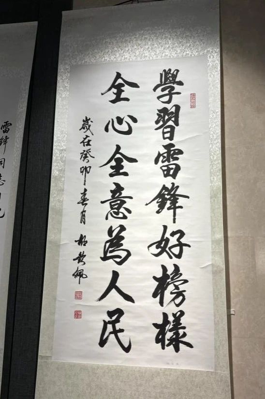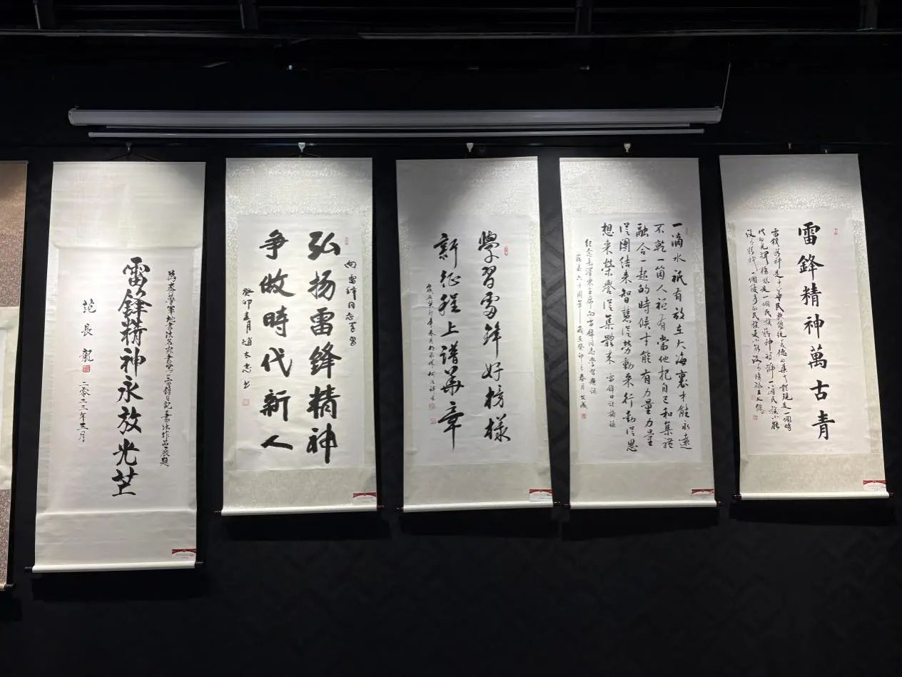 随后,同学们参观了名家书写的《雷锋日记》,作品以雷锋精神为内核,以书法为载体,展现了雷锋精神在当代的独特魅力。