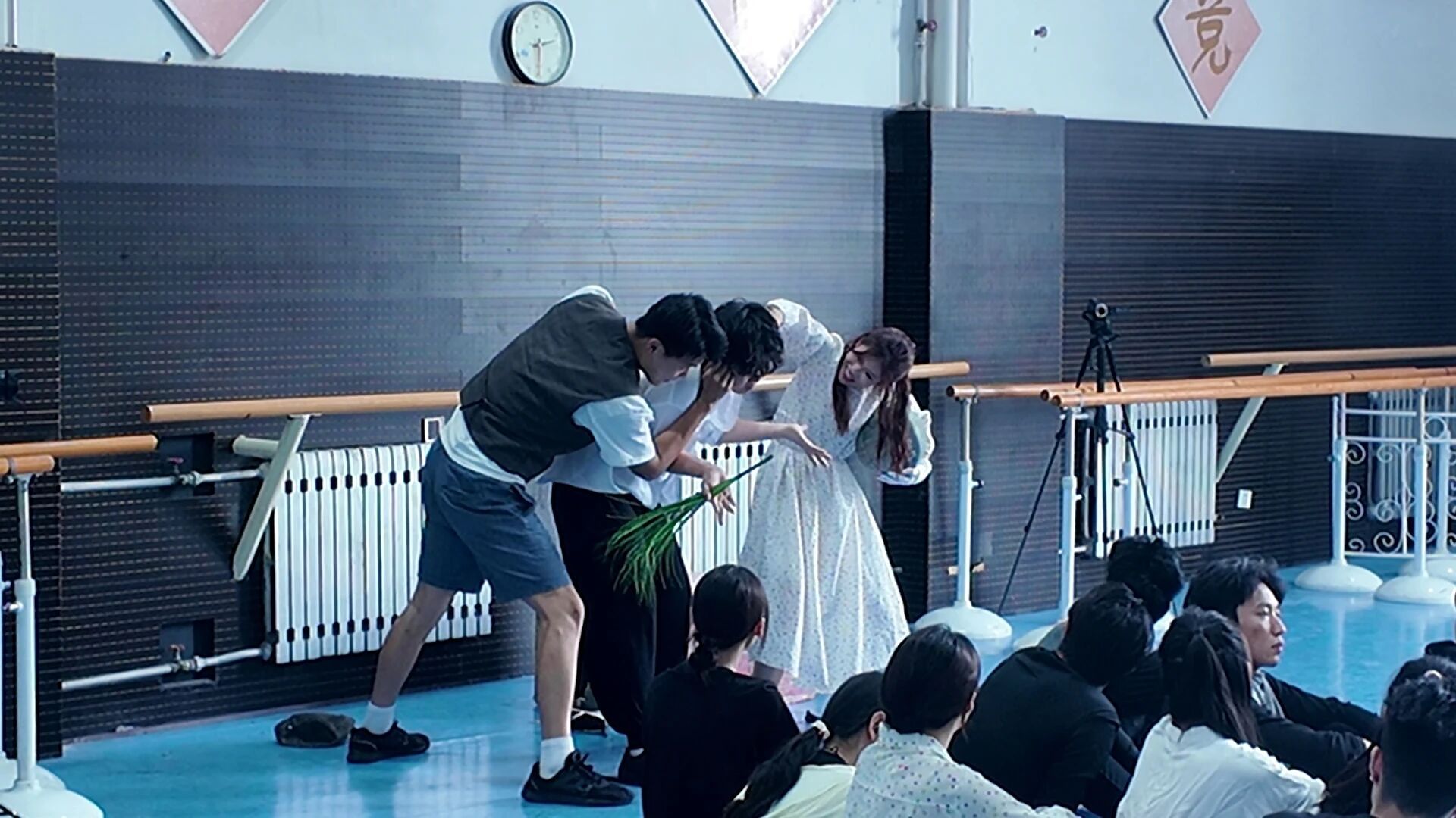 工作坊课程聚焦“有机造型术”“五感训练法”“规定情境构建”等斯坦尼表演体系的核心概念及其逻辑脉络,重建了师生对表演本质的认知框架。通过经典文本(如《演员自我修养》)与鲜活舞台案例的互证,精准澄清常见理论误区,助力师生对“舞台真实”的内涵与实现路径形成更为深刻、系统的认知。课程特别设置“地铁人物观察回课”“泡泡动物”想象力极限挑战、“小说角色速度植入训练”等特色环节。该特色环节有效打破了学员思维定式,提升其捕捉生活细节的敏锐度、拓宽艺术想象边界的能力,以及从文学文本中汲取养分、塑造鲜活角色的转化能力。